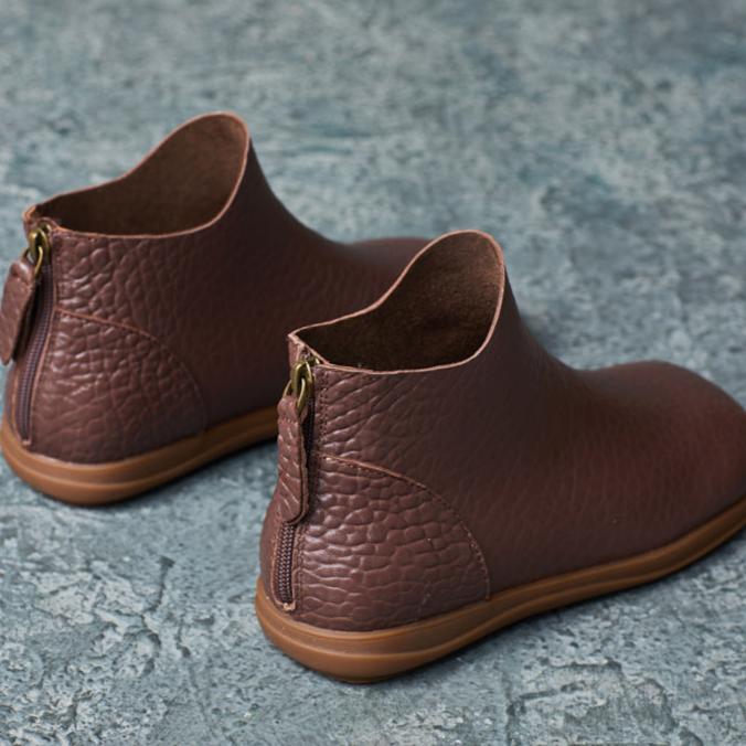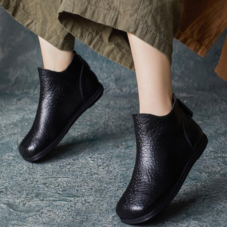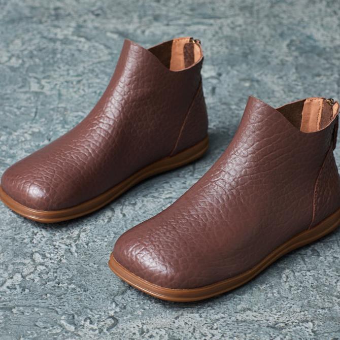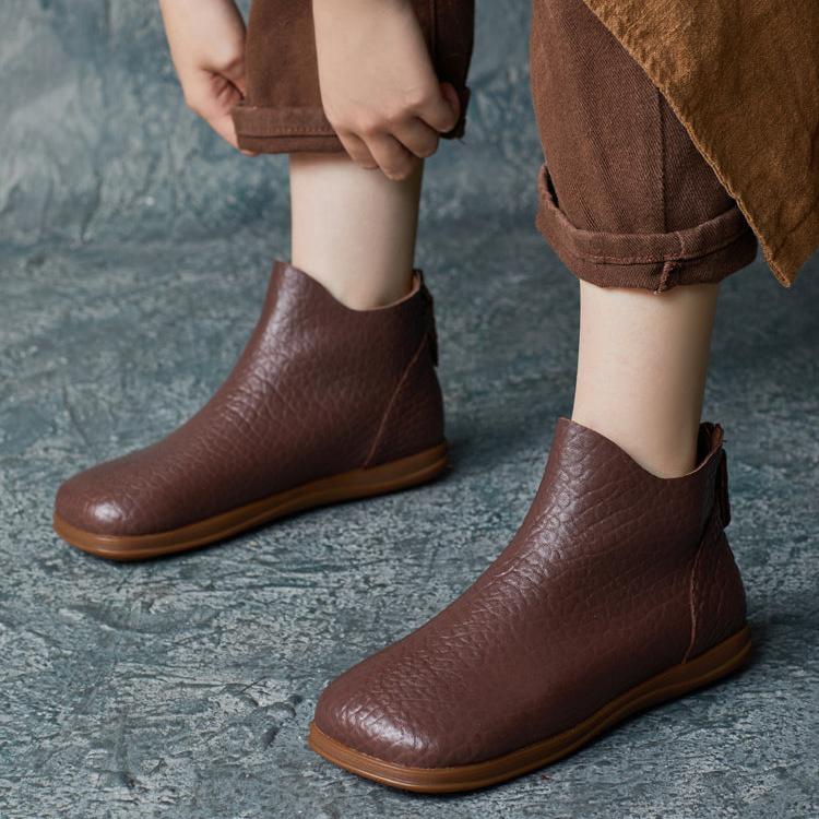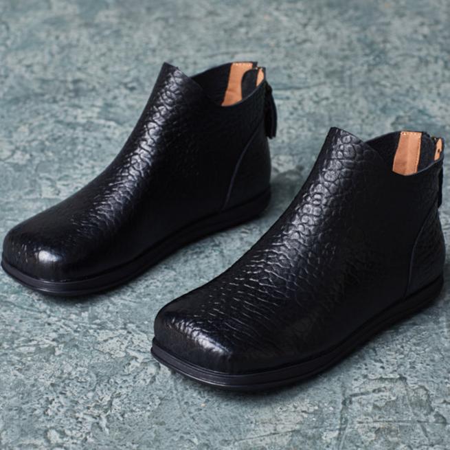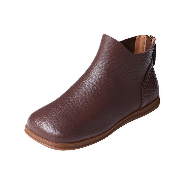Babakud Women Autumn Vintage Ethnic Style Square-Toe Leather Ankle Boots with Zipper