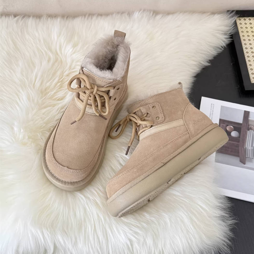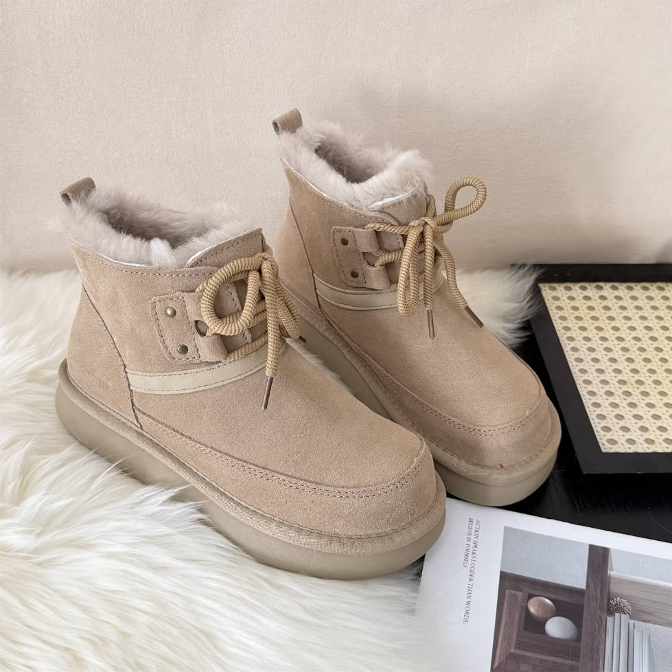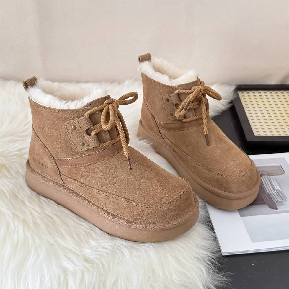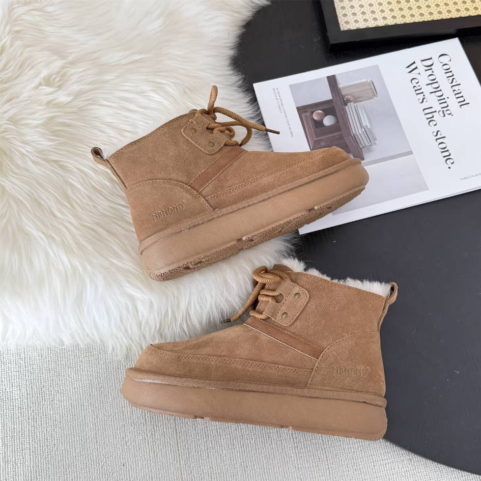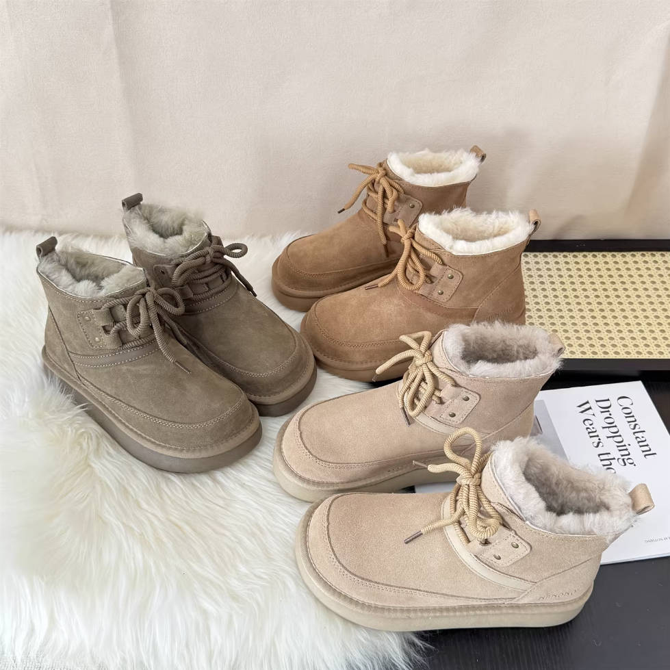 - Item Type: Genuine Leather Sueded Winter Woolen Lace-Up Warm Ankle Boots