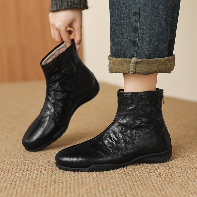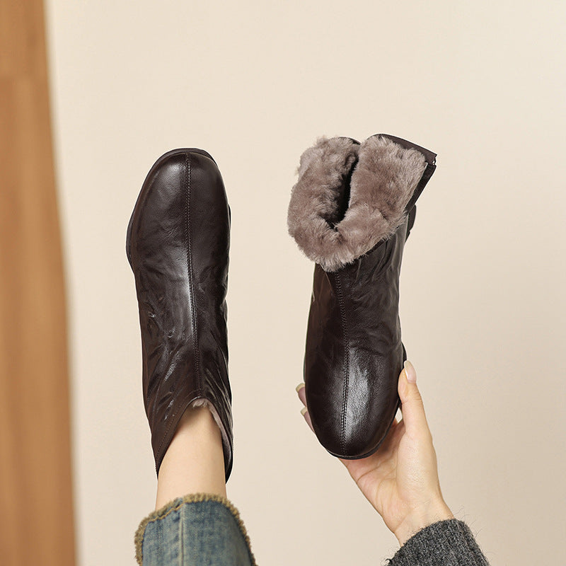 Winter Sheepskin Leather Solid Color Wool-In Soft Flat Sole Ankle Boots