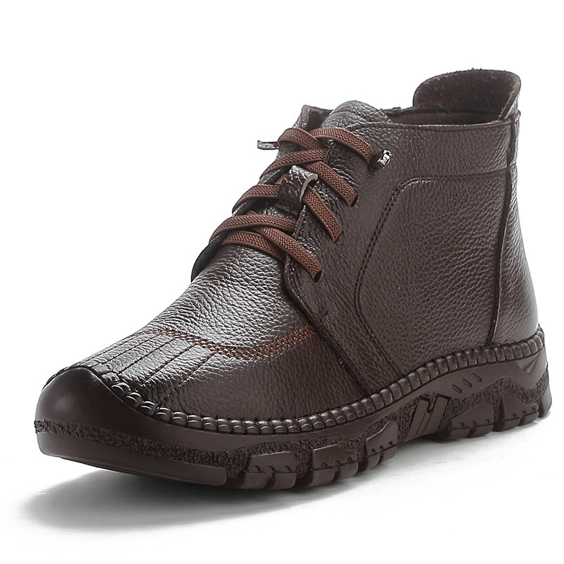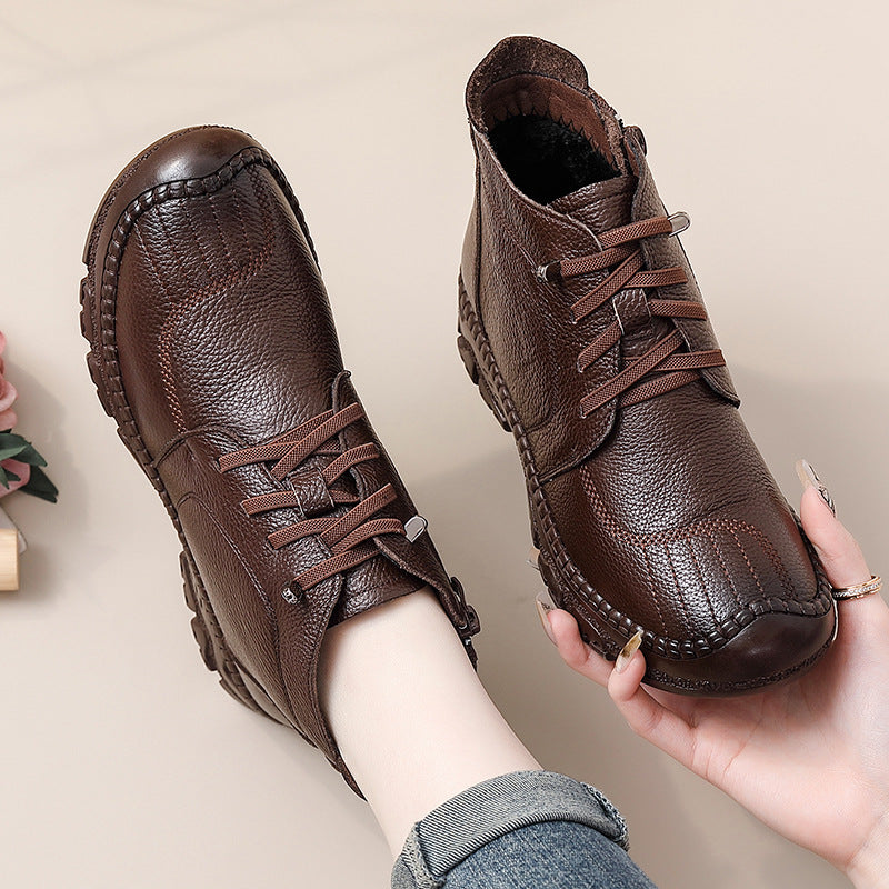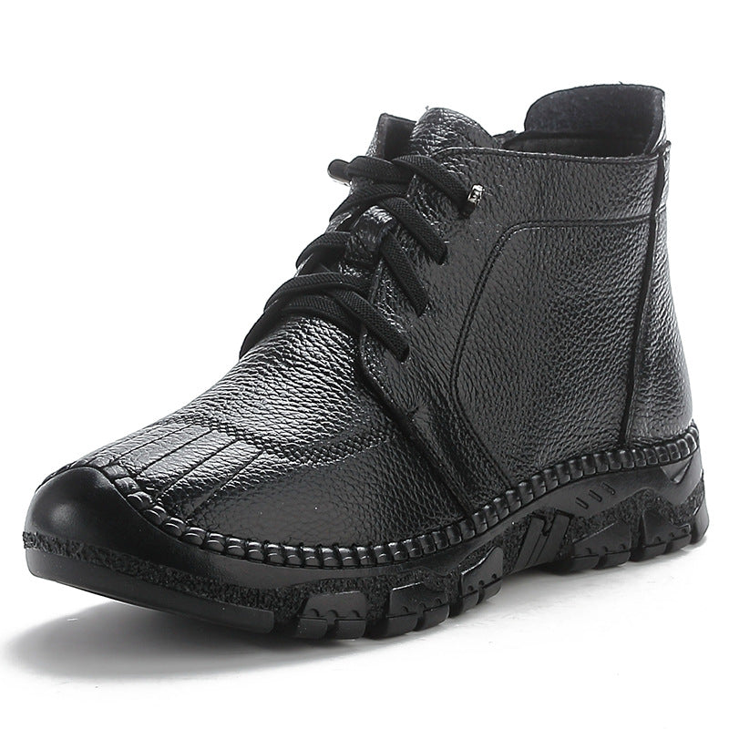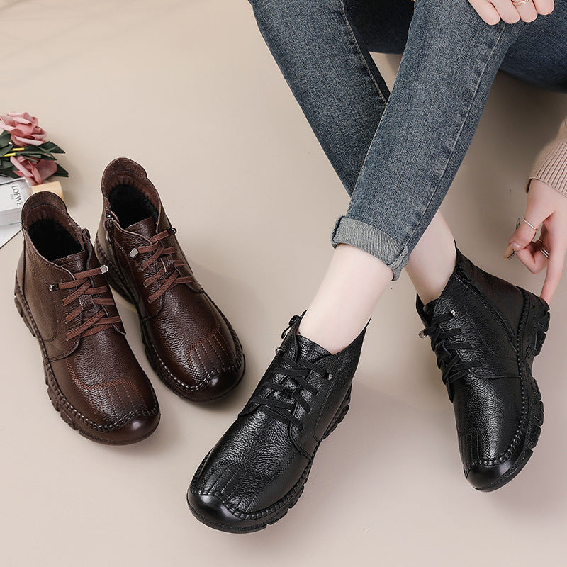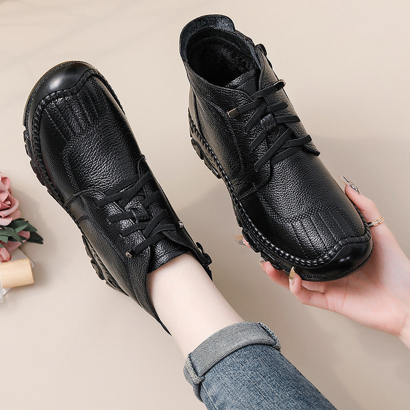Winter Top Leather Casual Thick Soft Sole Warm Plush Ankle Boots