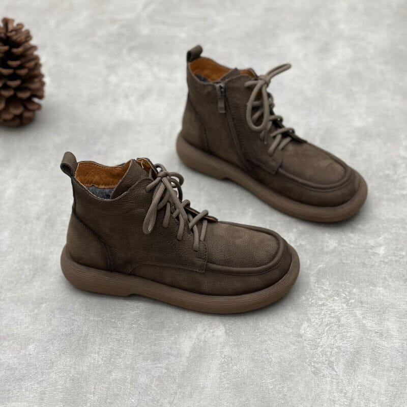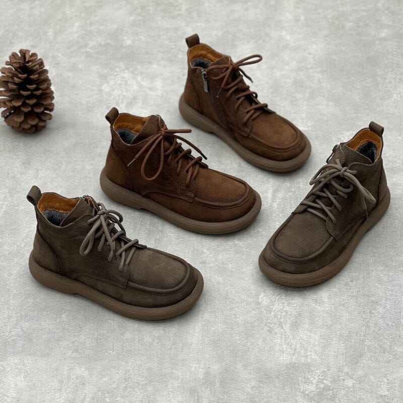 Women Winter Retro Leather Flat Furred Ankle Boots