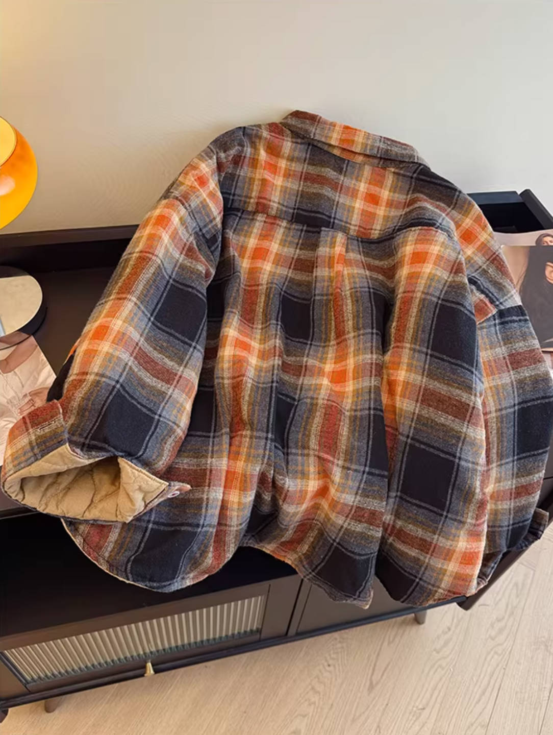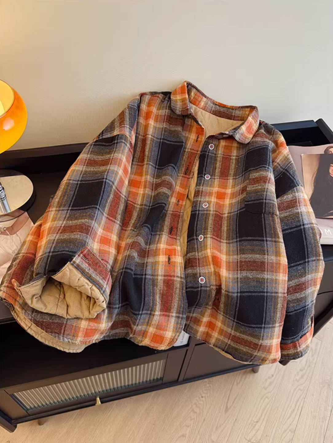 - Item: Classic Plaid Retro Cotton Warm Cotton-In Loose Casual Coat