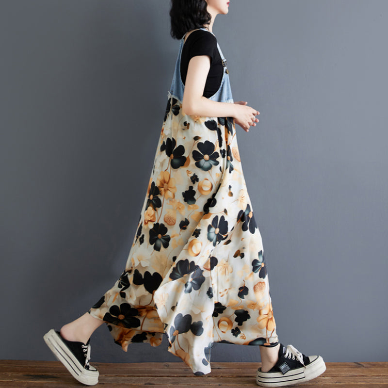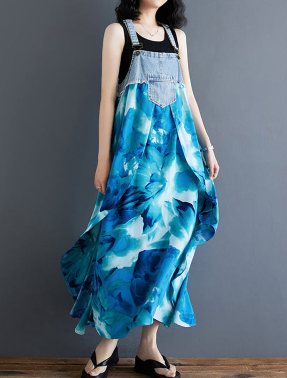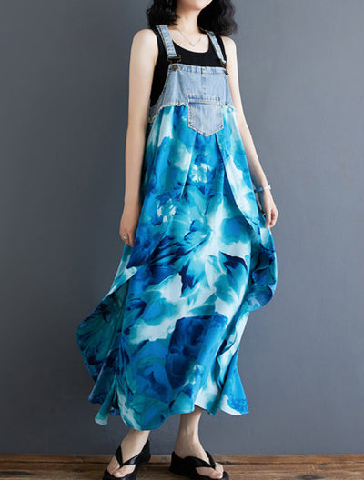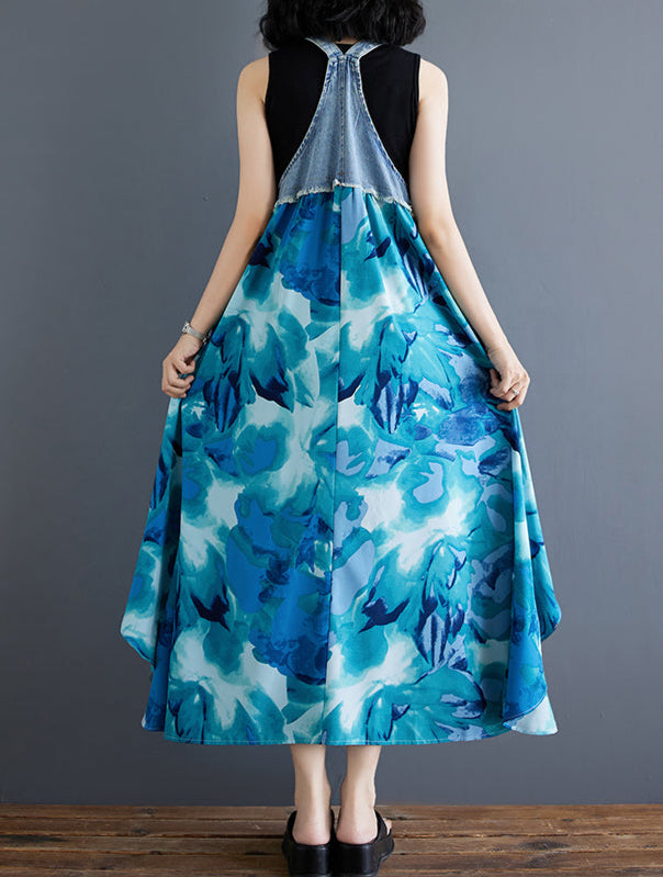 • Item: Women's Floral Spaghetti Strap Denim Patchwork Maxi Dress