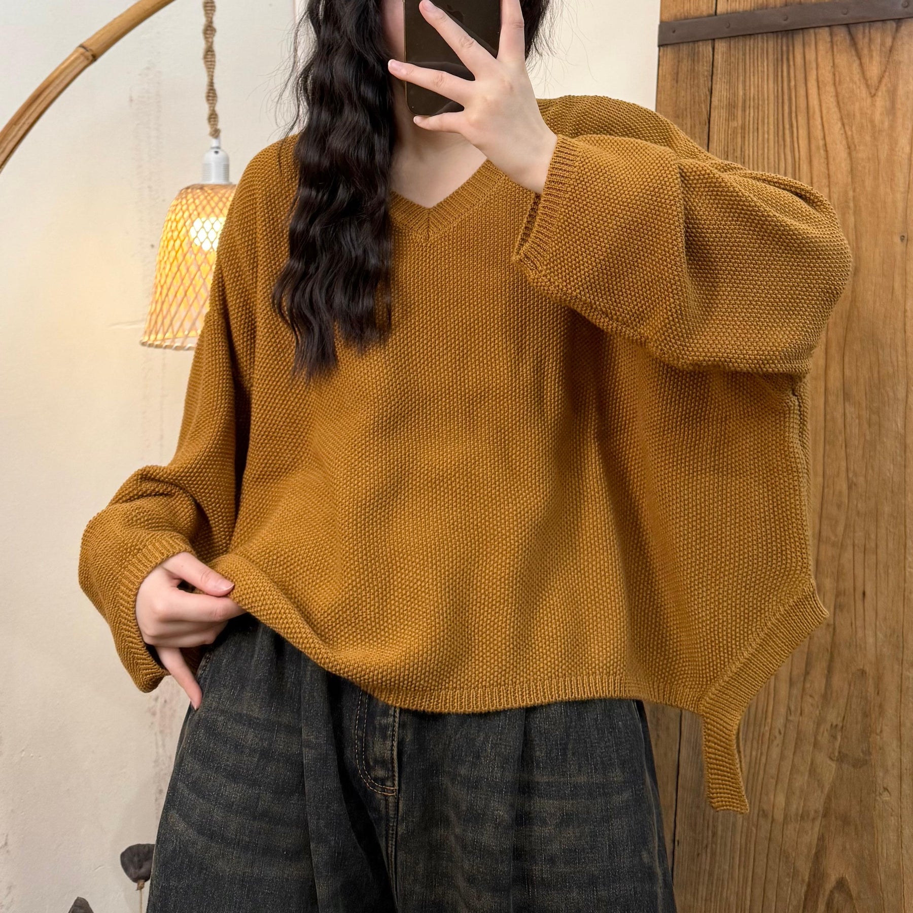 Women Spring Vintage Casual Cotton Knit Sweater with Batwing Sleeves