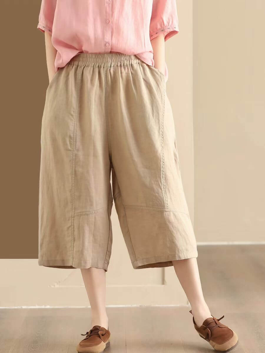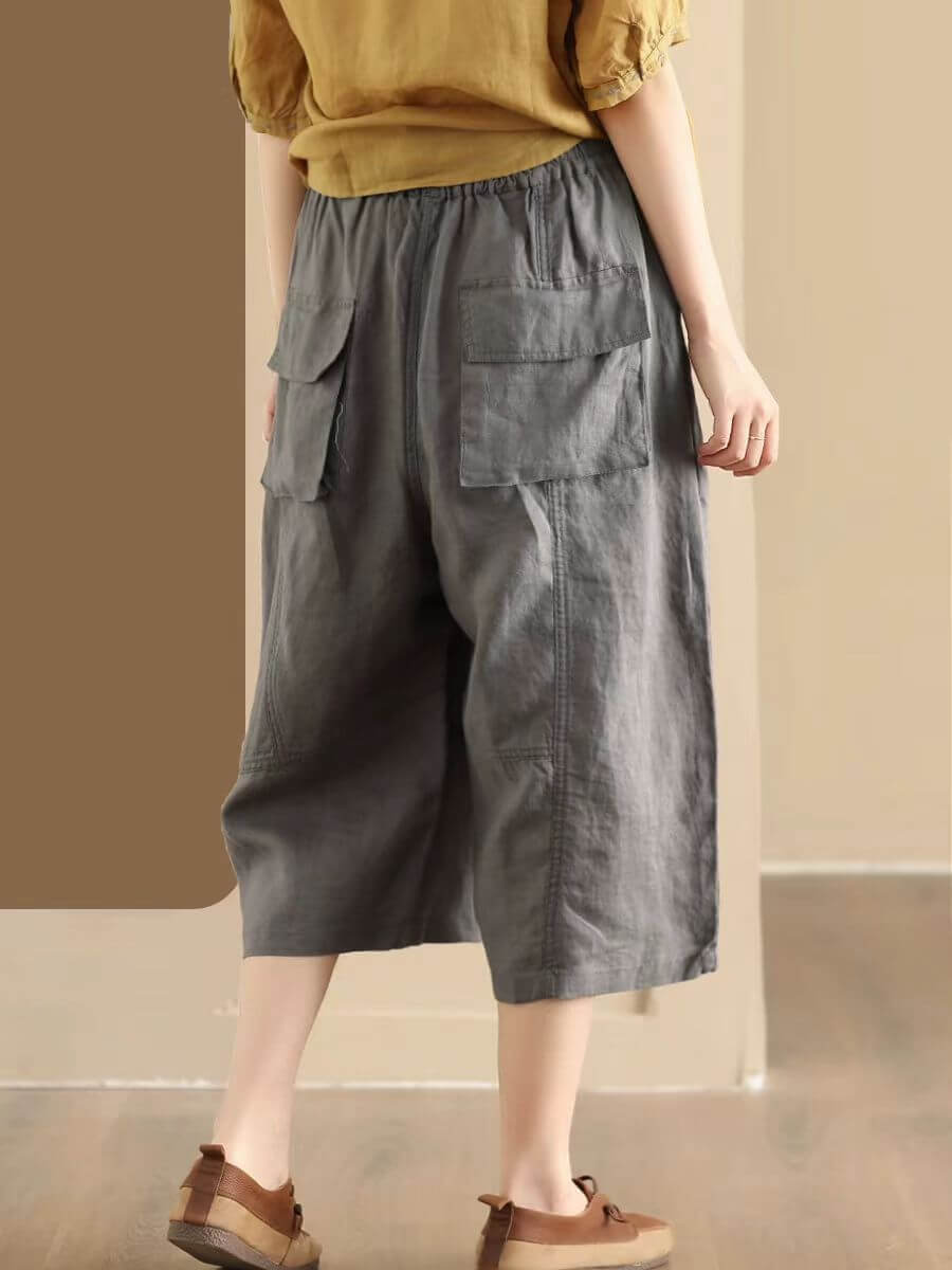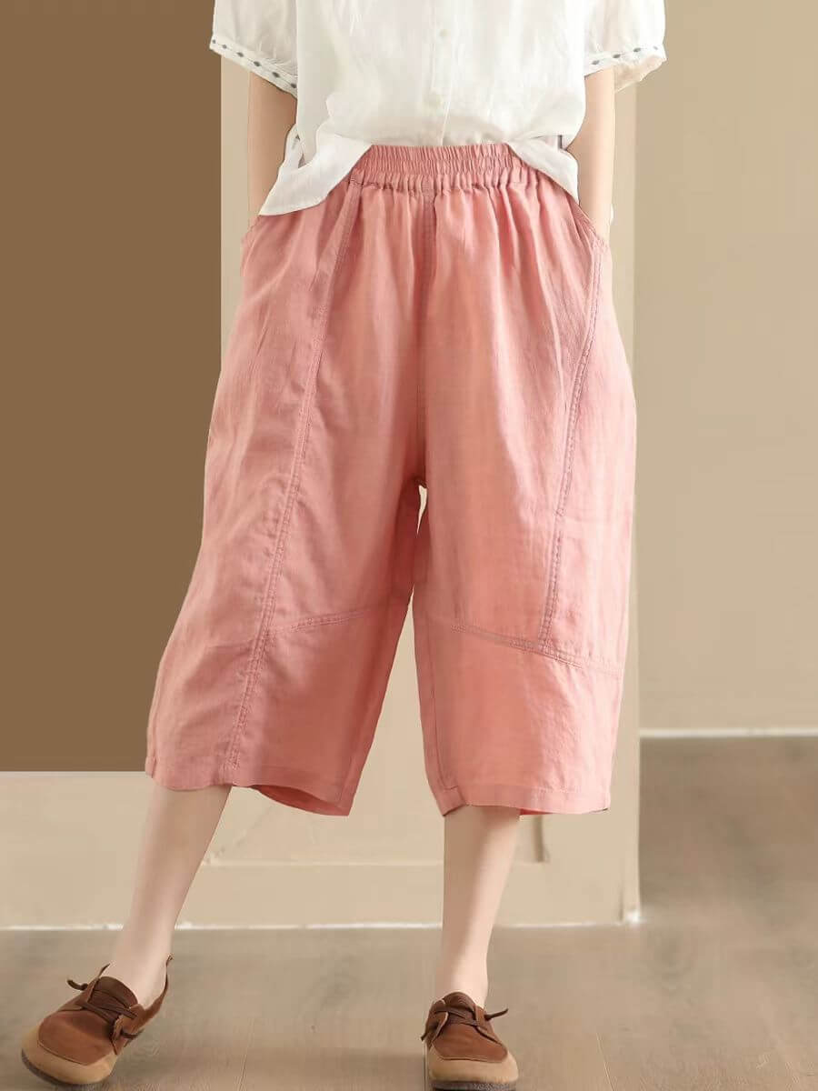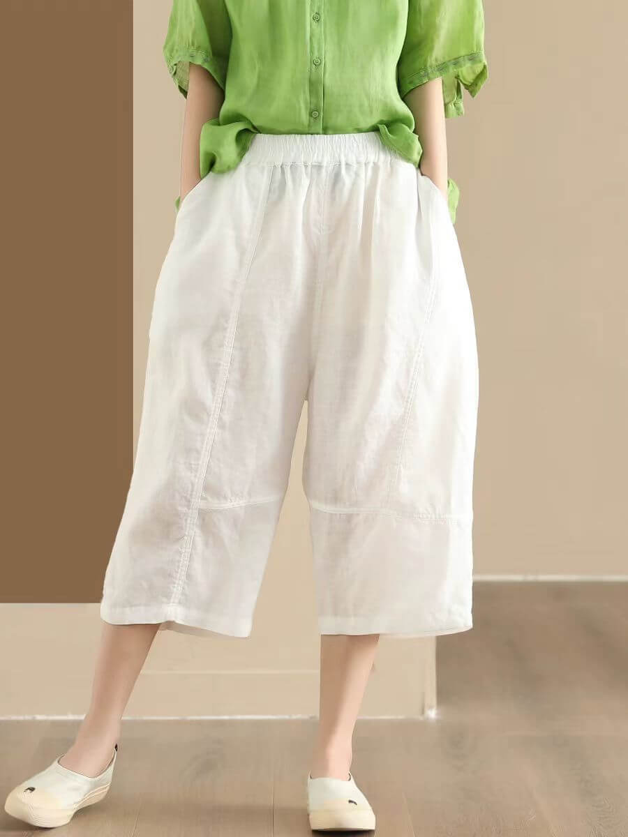 Babakud Women Summer Vintage Ramie Casual Cropped Pants