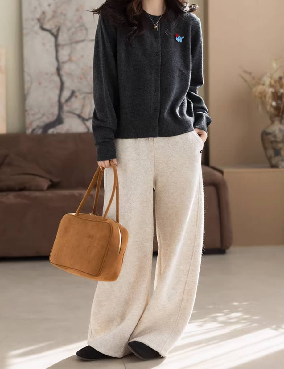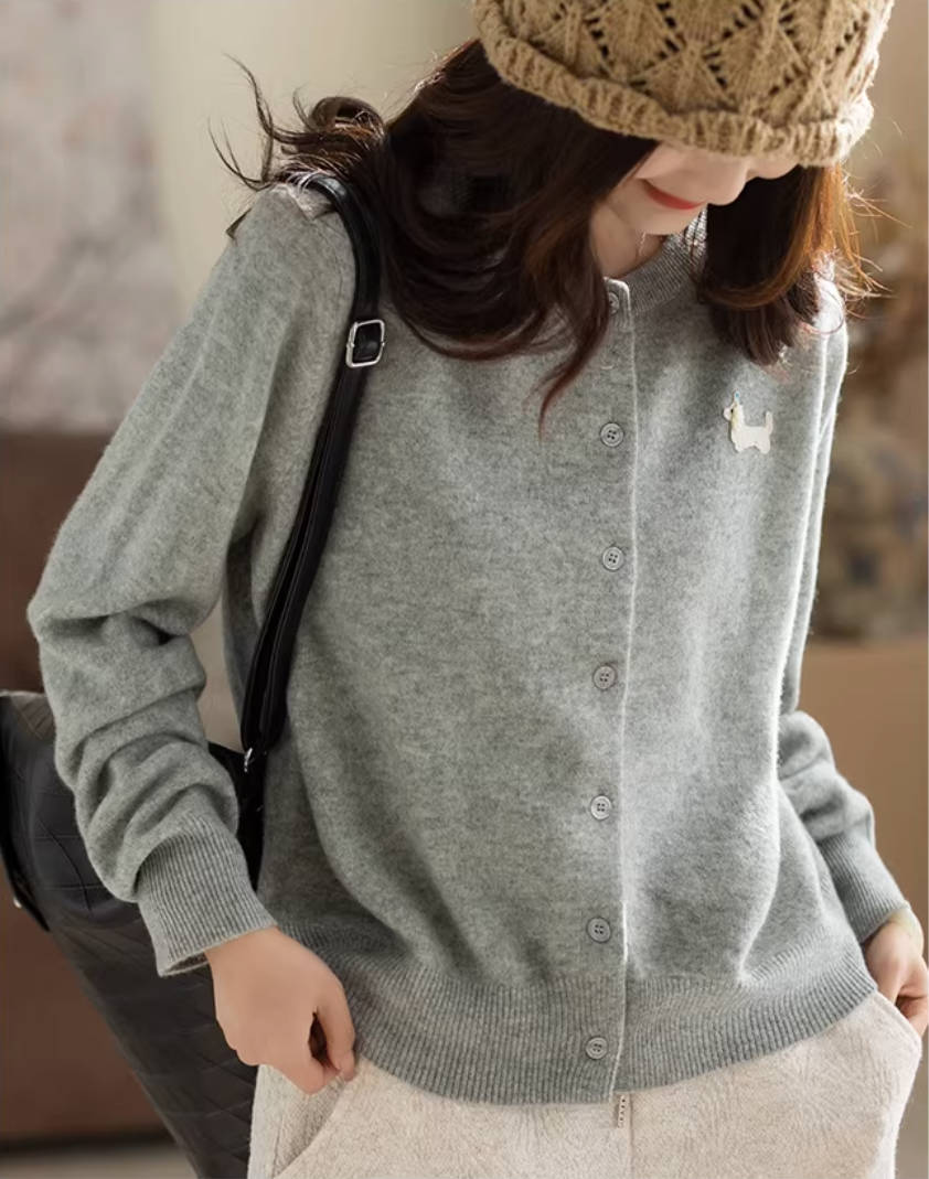 Women Wool Round Neck Embroidered Soft Knitted Cardigans