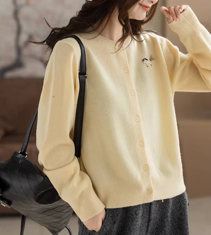 • Item: Women Wool Round Neck Embroidered Soft Knitted Cardigans