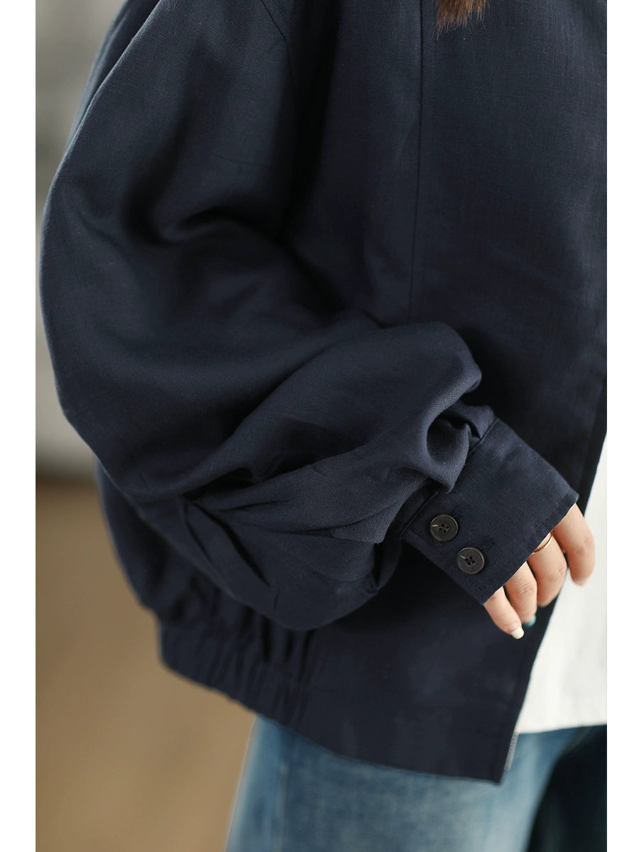 - Item: Women Retro Linen Round Neck Zipper Solid Color Jacket