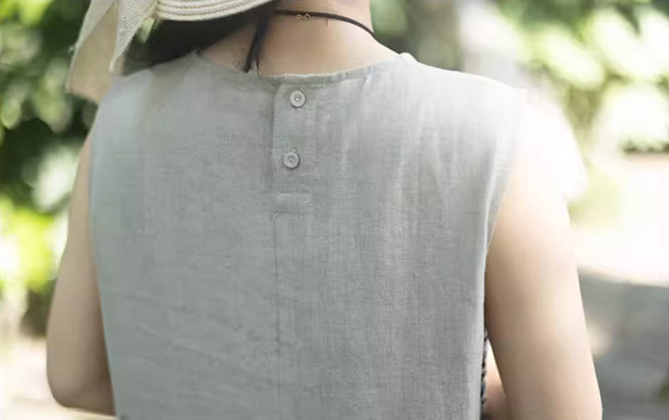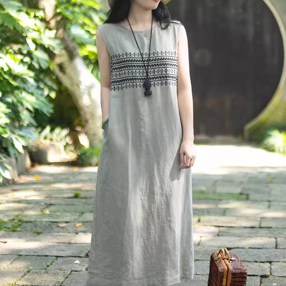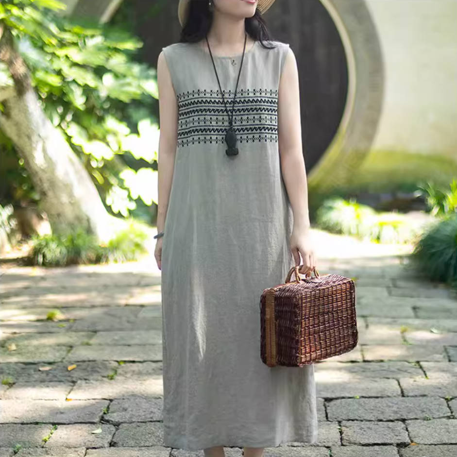 - Item: Linen Breathable Sleeveless Embroidered Round Neck Loose Dress