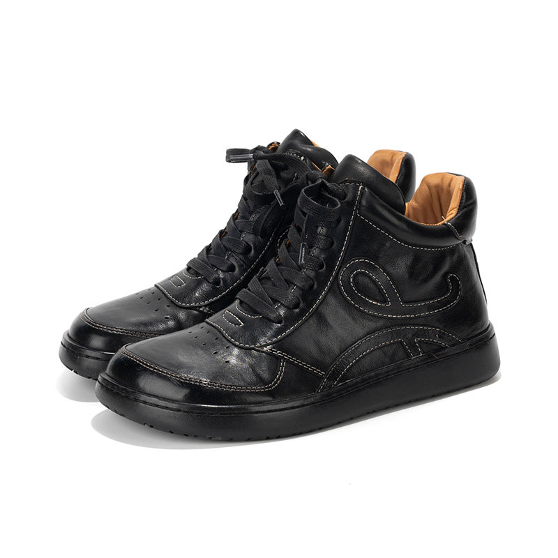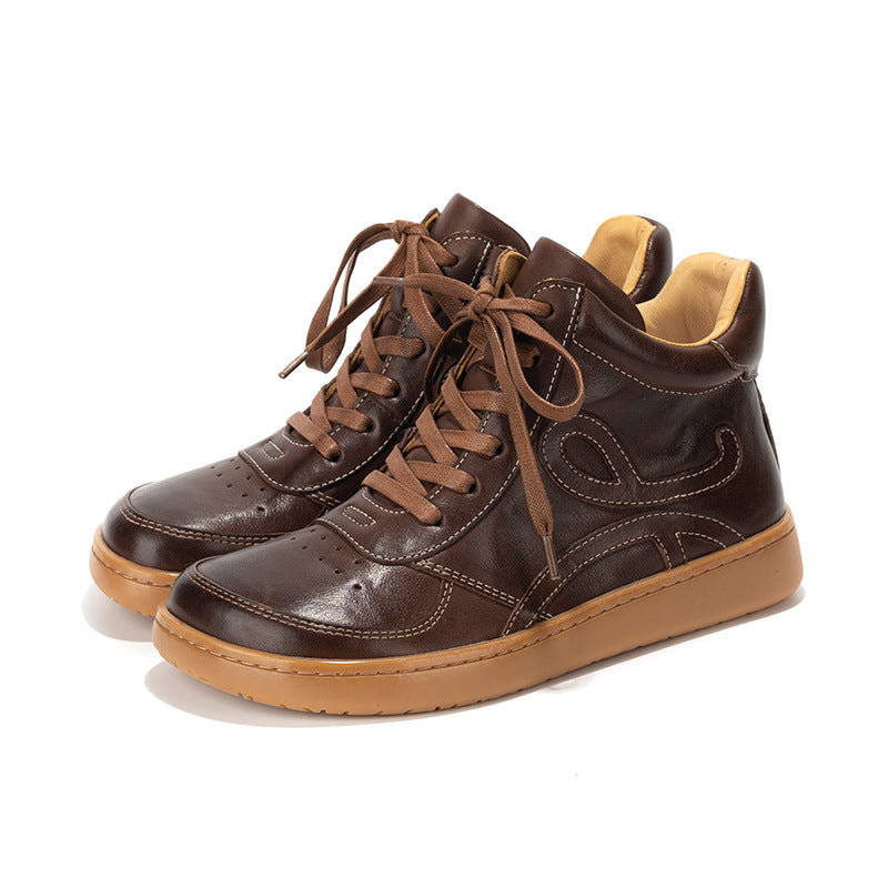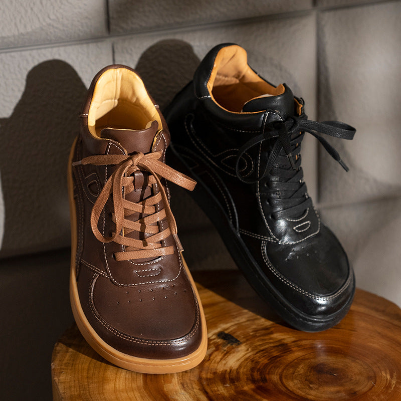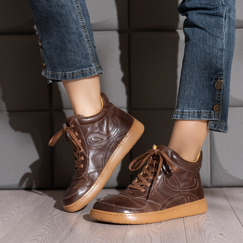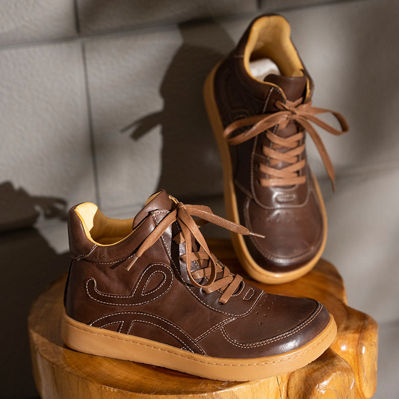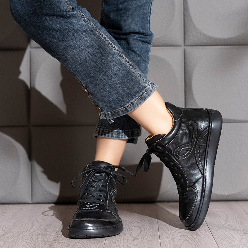 Casual Leather Embroidered Lace-Up Soft Sole Sneakers
