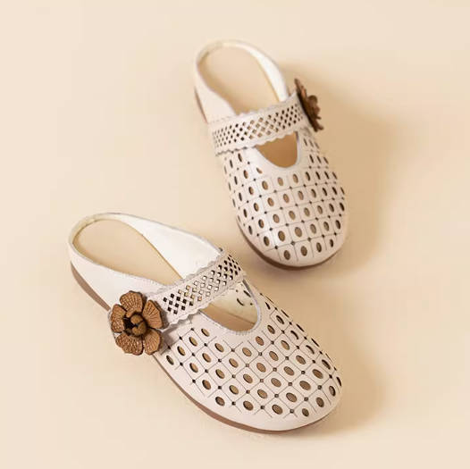 Retro Summer Leather Hollow Out Closed Toe Soft Flat Sole Sandals