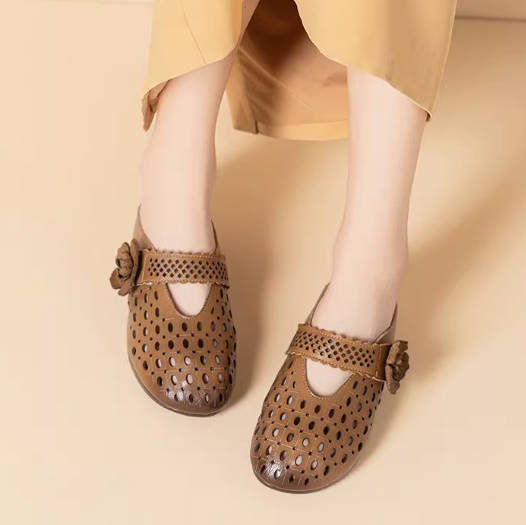 - Item Type: Retro Summer Leather Hollow Out Closed Toe Soft Flat Sole Sandals