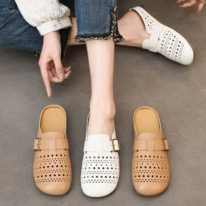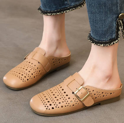 - Item Type: Women Genuine Top Leather Hollow Out Round Toe Soft Flat