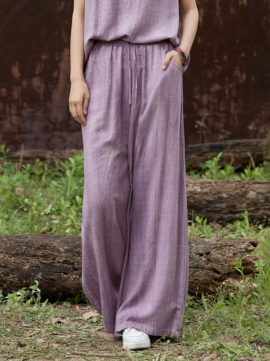 Tie-Dye Linen Comfortable Solid Color Elastic Waist Lace-Up Pants