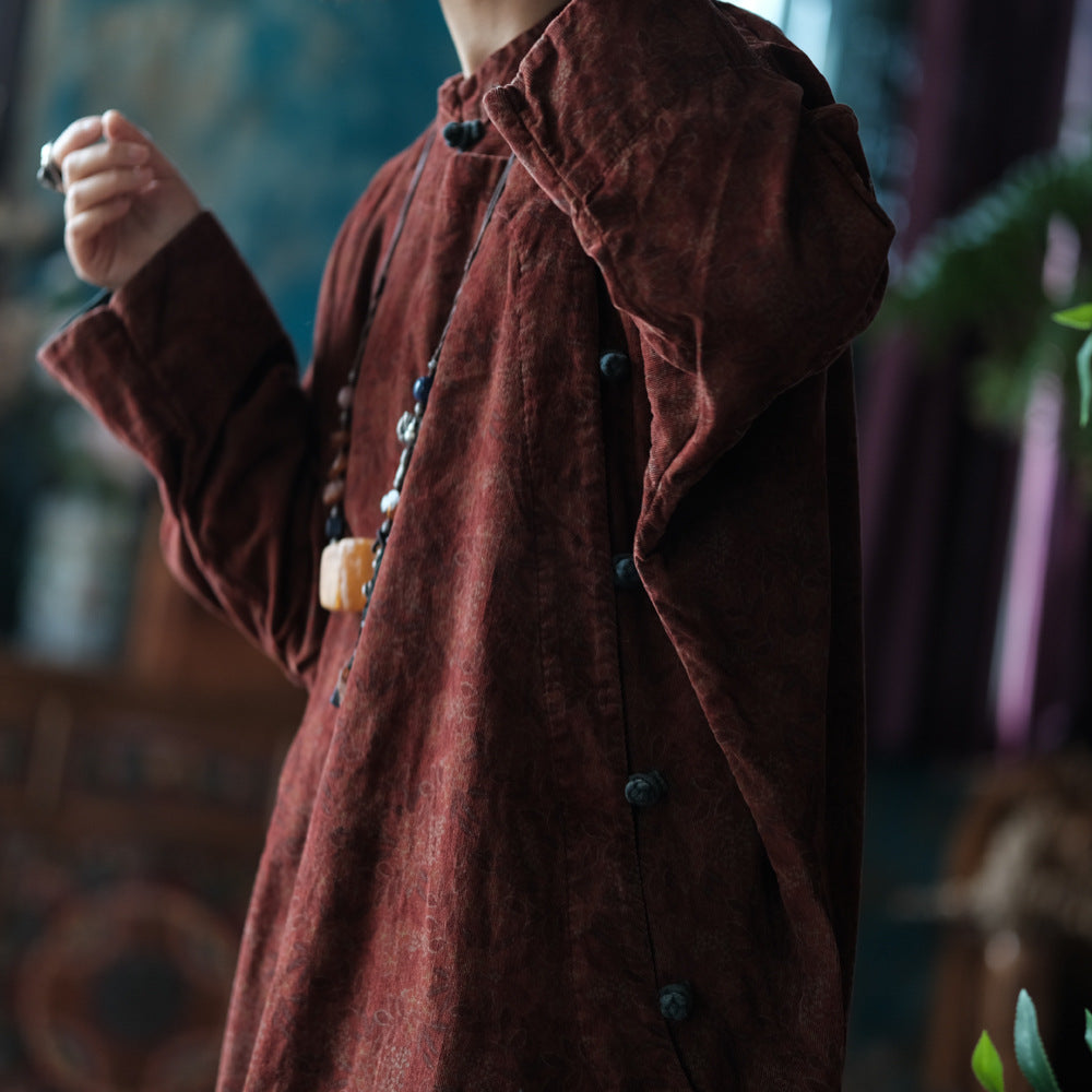 - Item: Retro Autumn Plus Size Cotton Stand Collar Red Long Dress