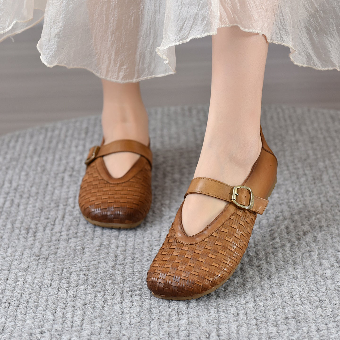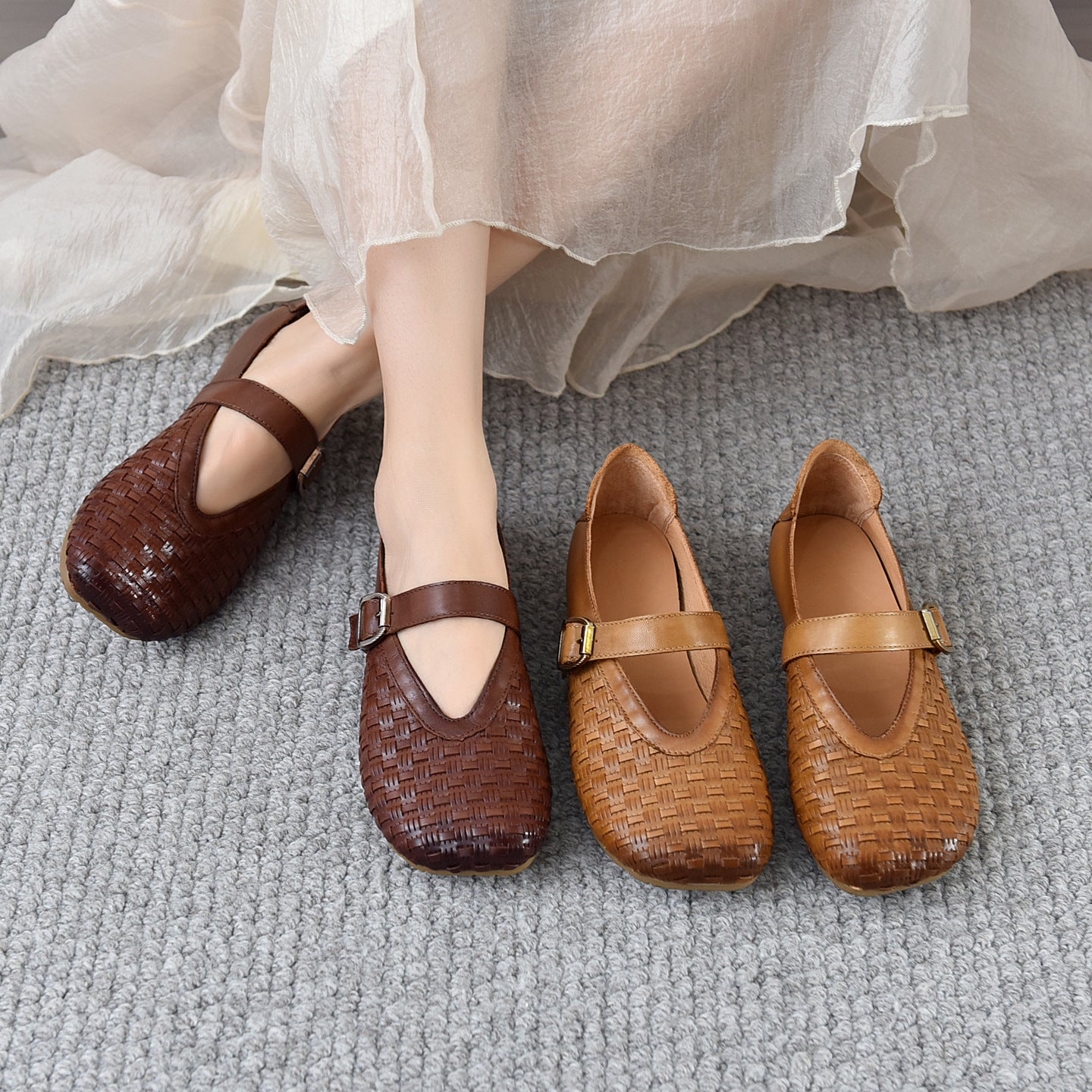 - Item Type: Babakud Retro Leather Woven One Straped Shallow Flat Shoes