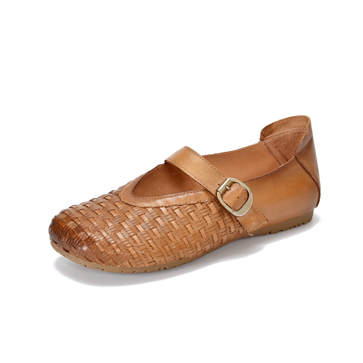 Babakud Retro Leather Woven One Straped Shallow Flat Shoes