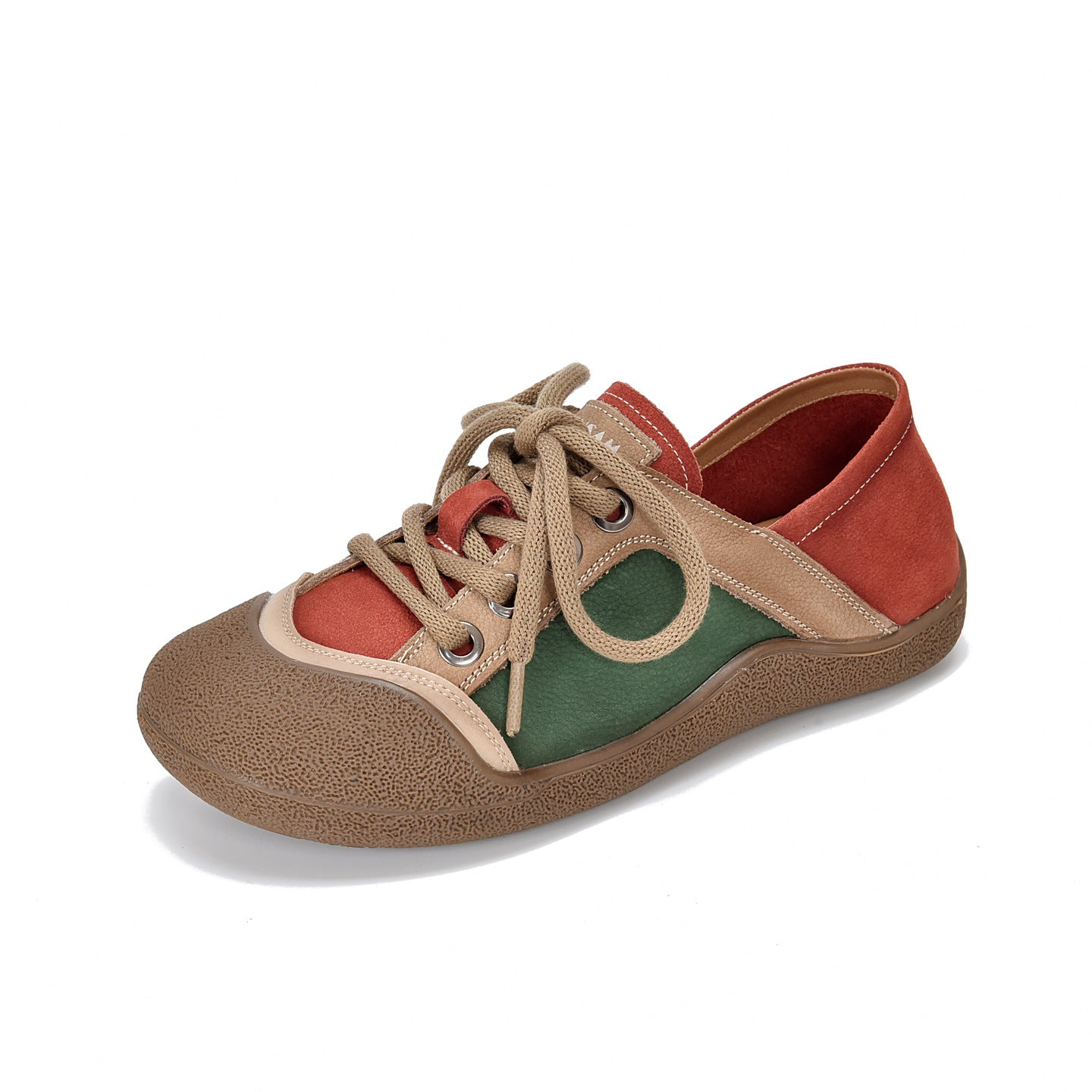 - Item Type: Casual Leather Round Toe Patchwork Lace-Up Soft Sole Flat Shoes