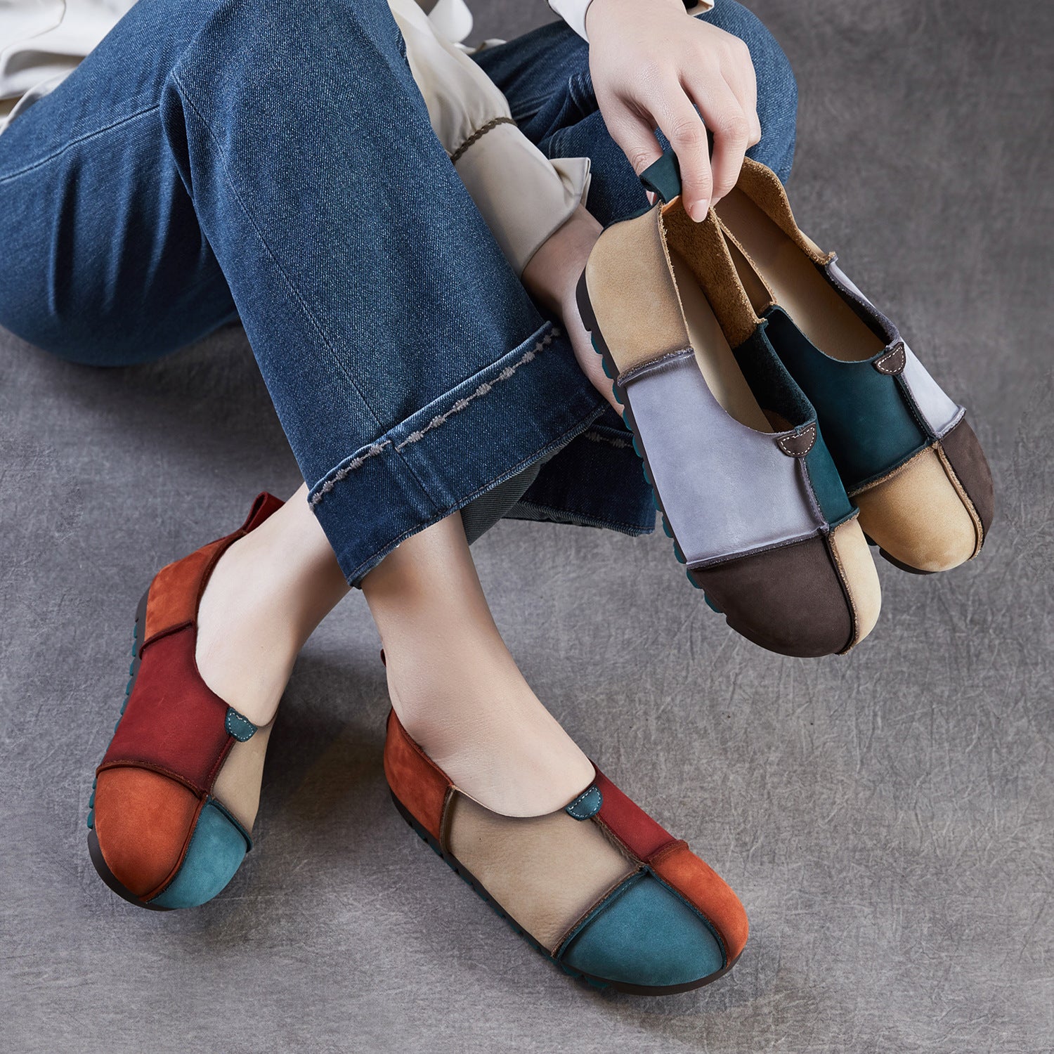 - Item Type: Genuine Leather Patchwork Shallow Casual Soft Sole Flat Shoes