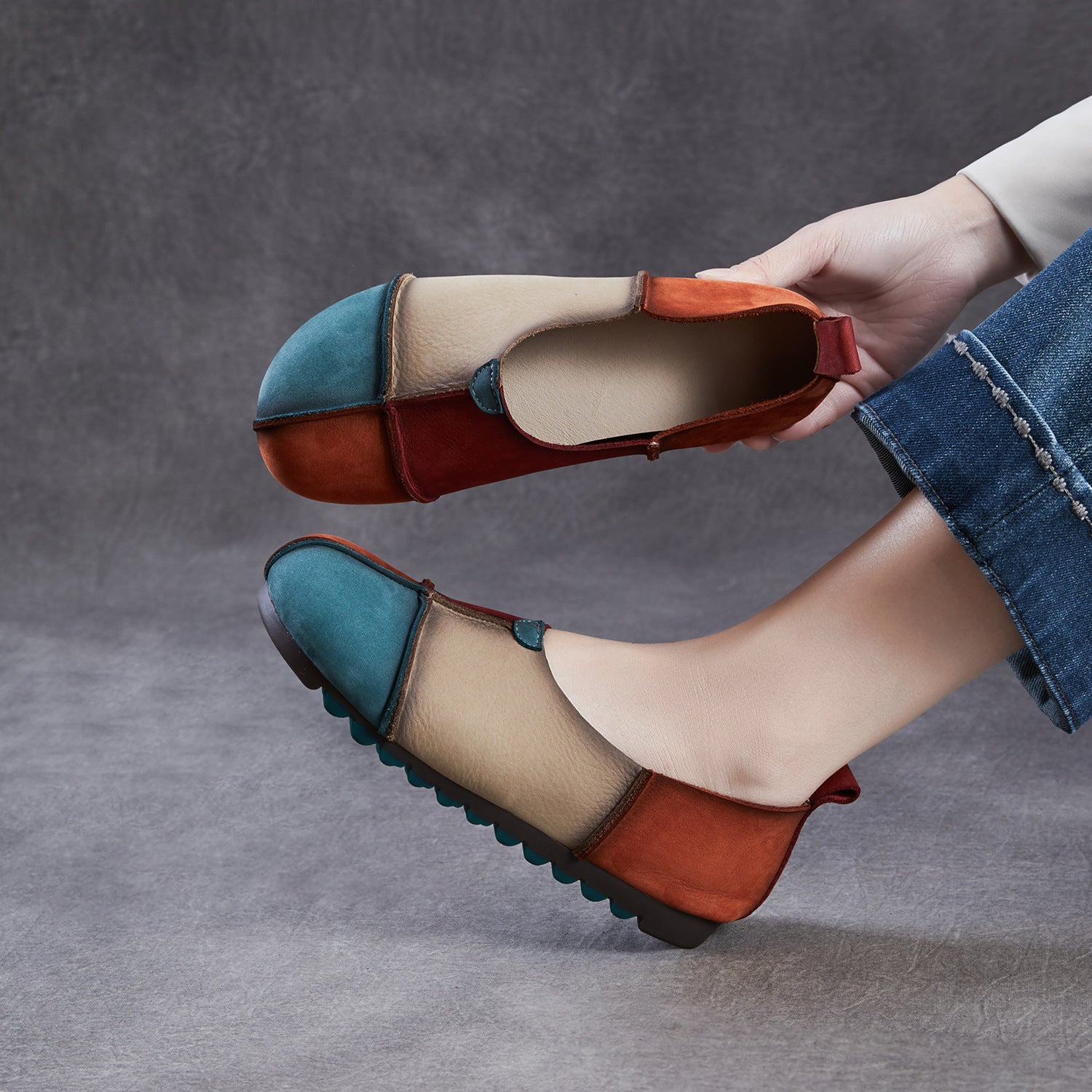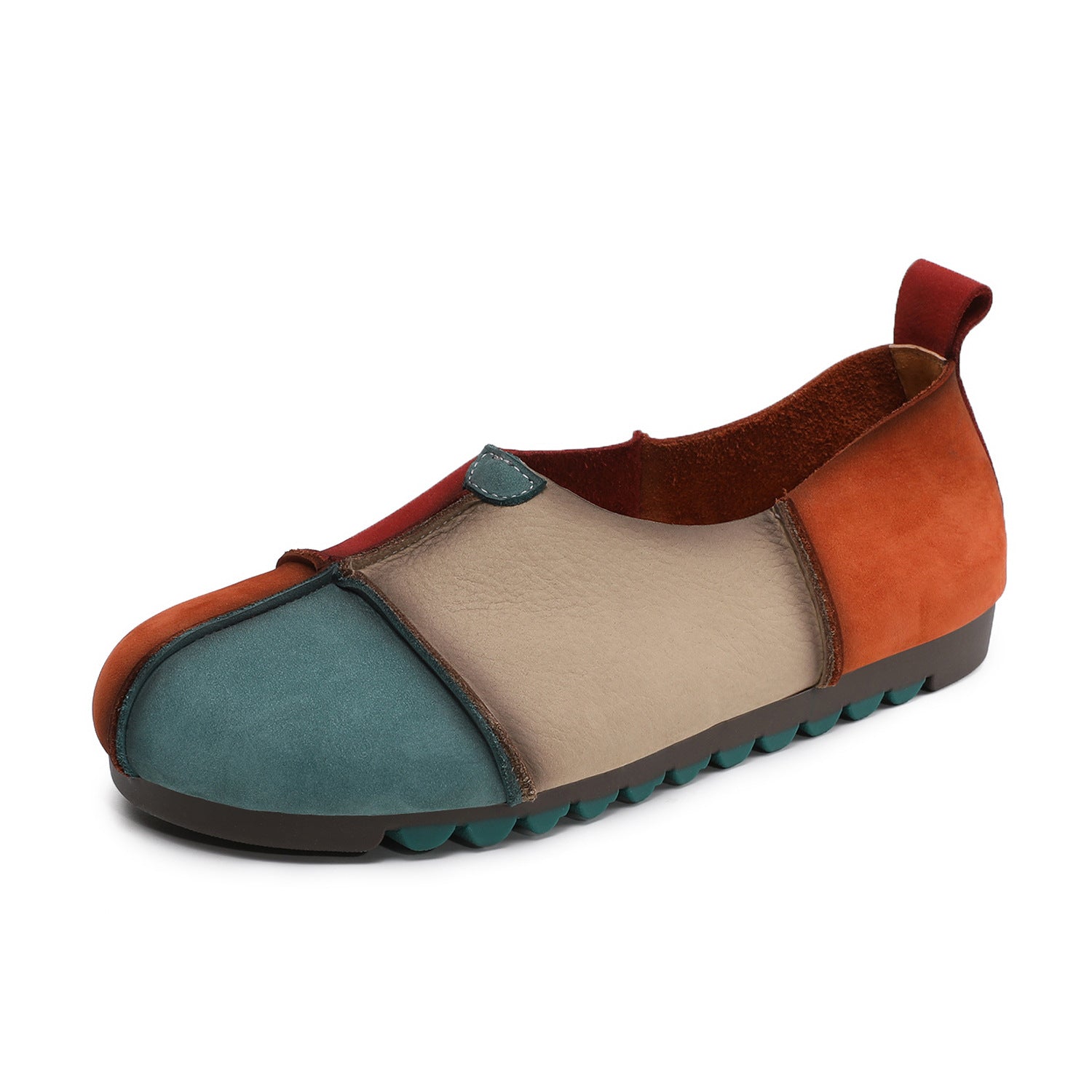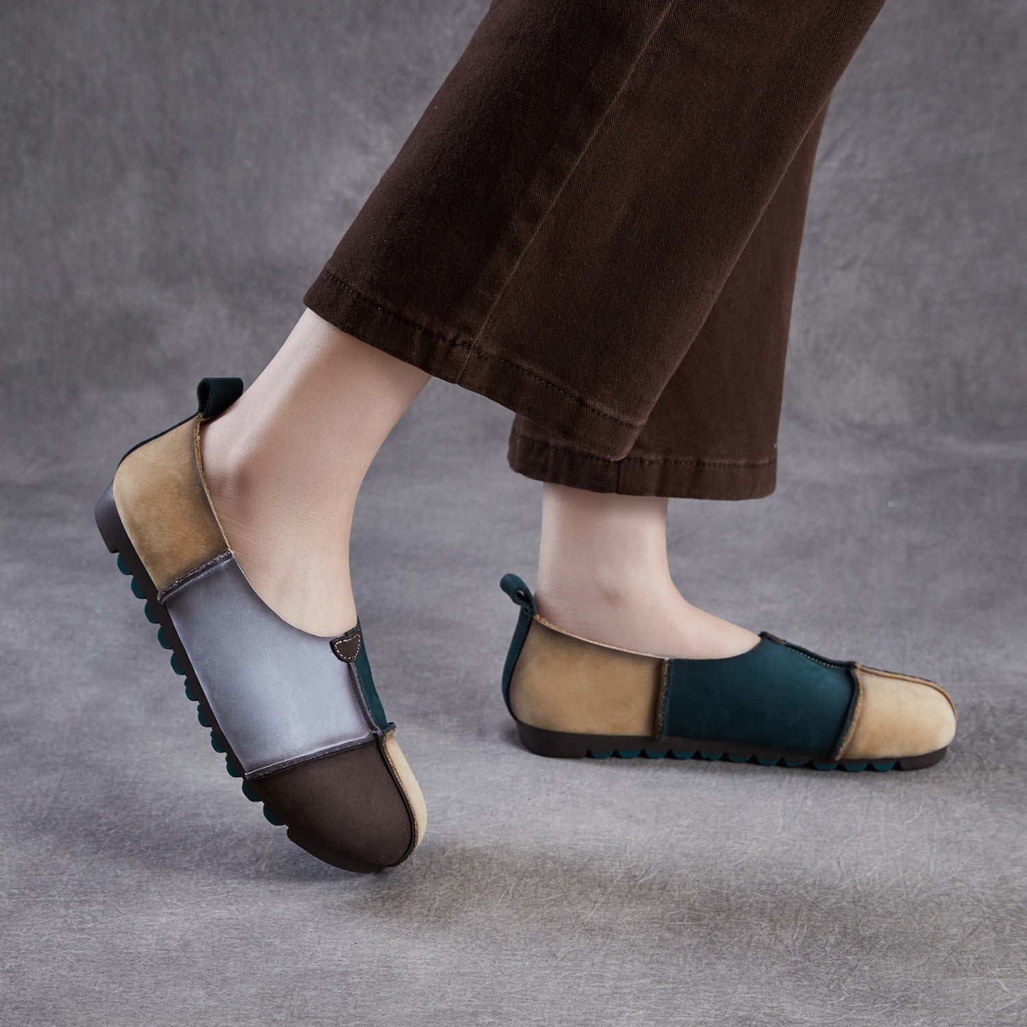 Genuine Leather Patchwork Shallow Casual Soft Sole Flat Shoes