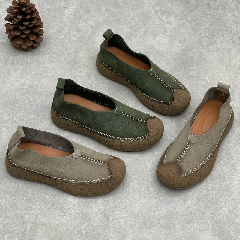 Retro Lazy Leather Round Toe Soft Everyday Flat Sole Slip-Ons