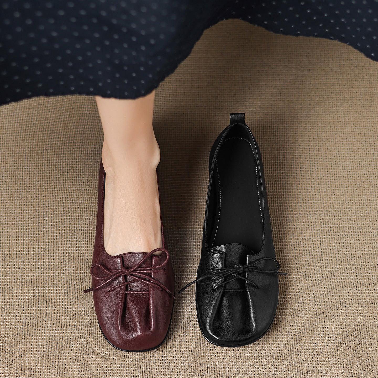 Retro Sheepskin Leather Round Toe Shallow Flat Shoes
