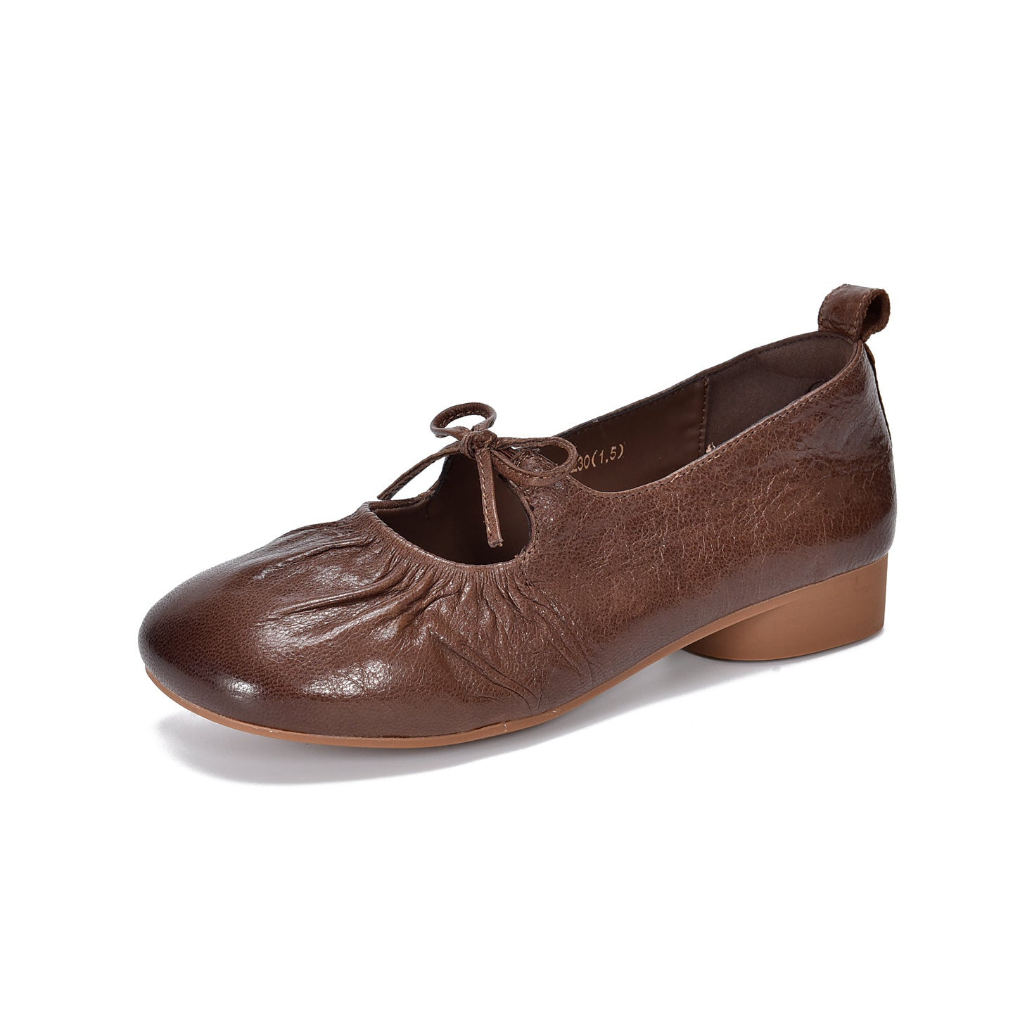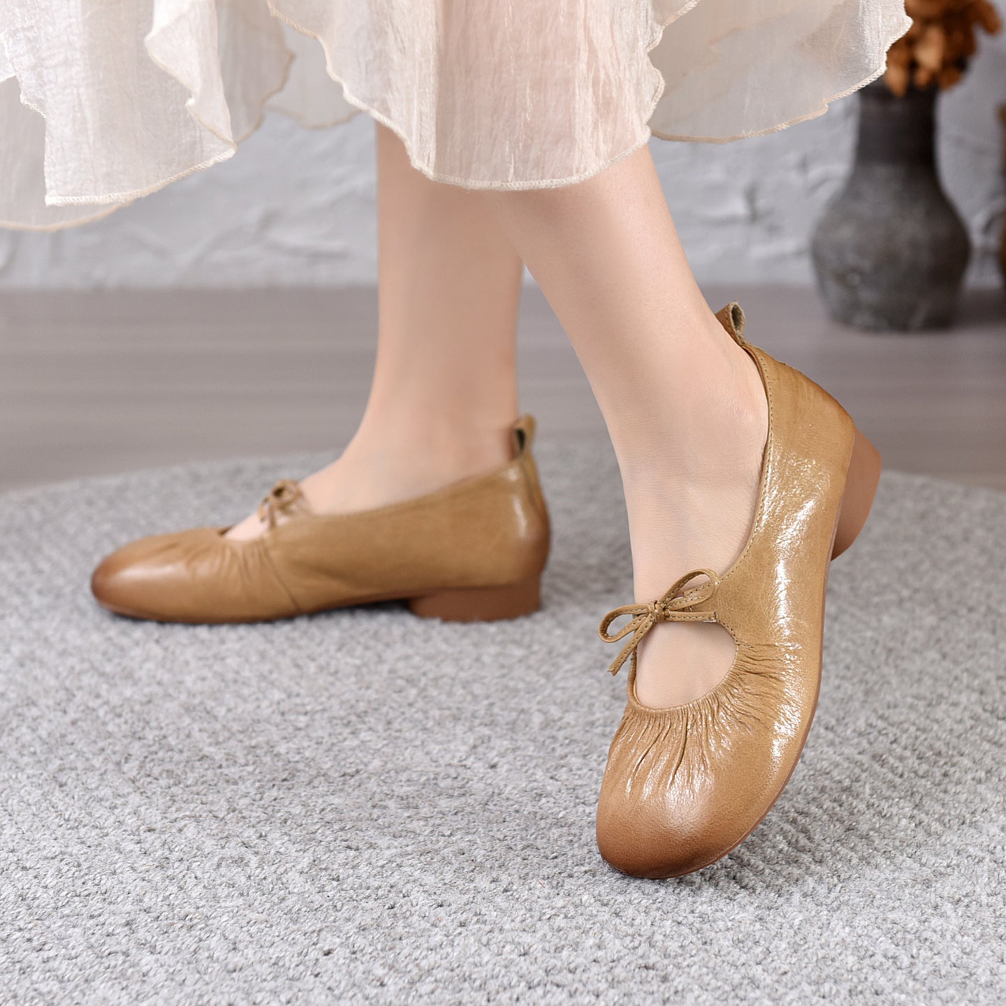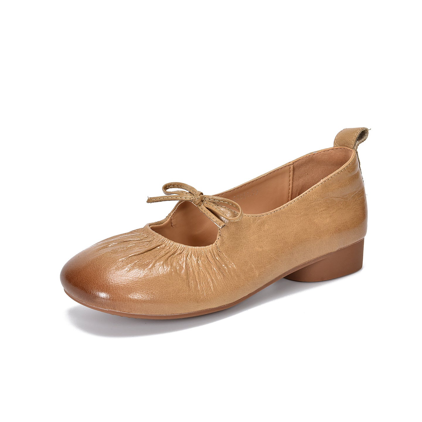 - Item Type: Spring Leather Round Toe Shallow Bow Slip-On Chunky Shoes