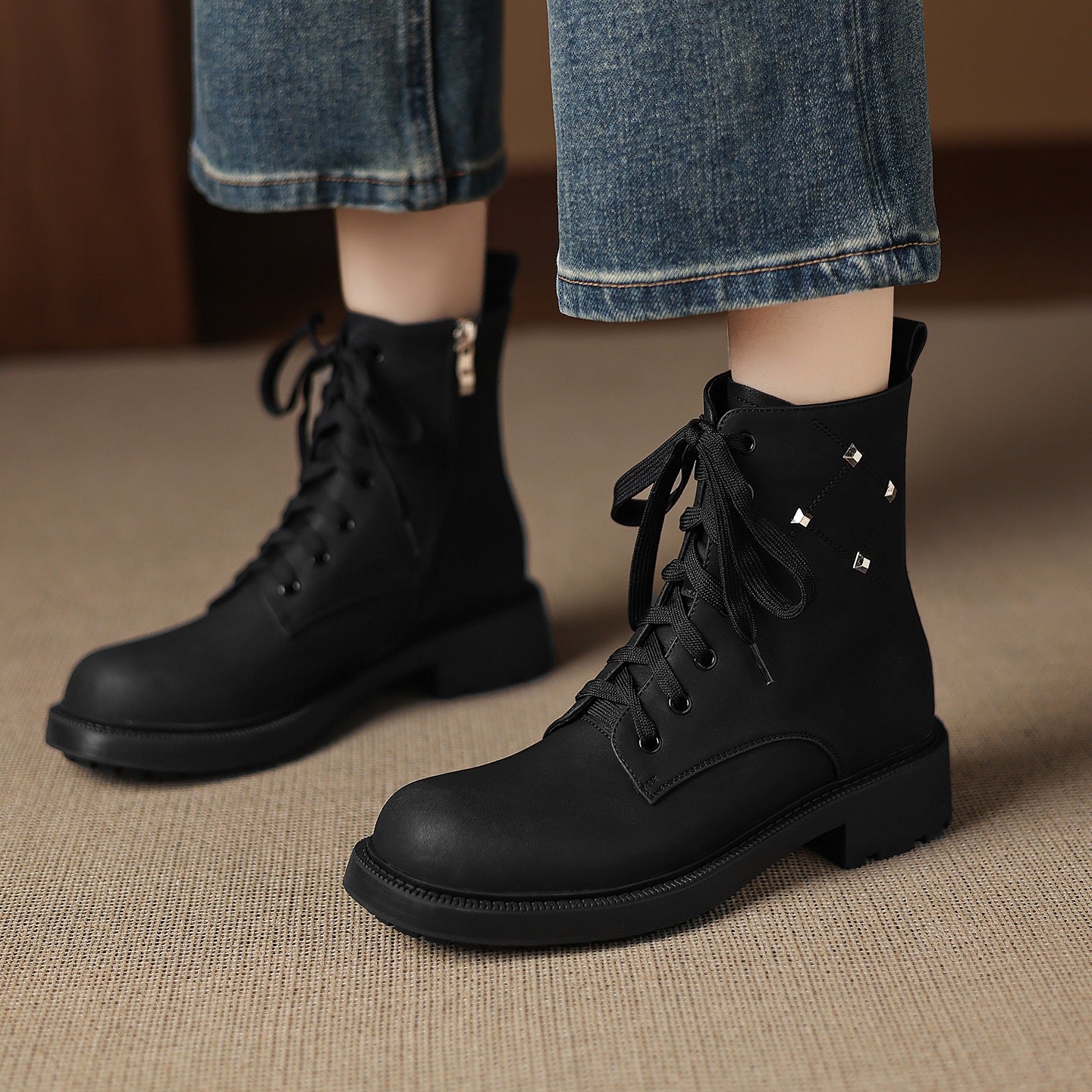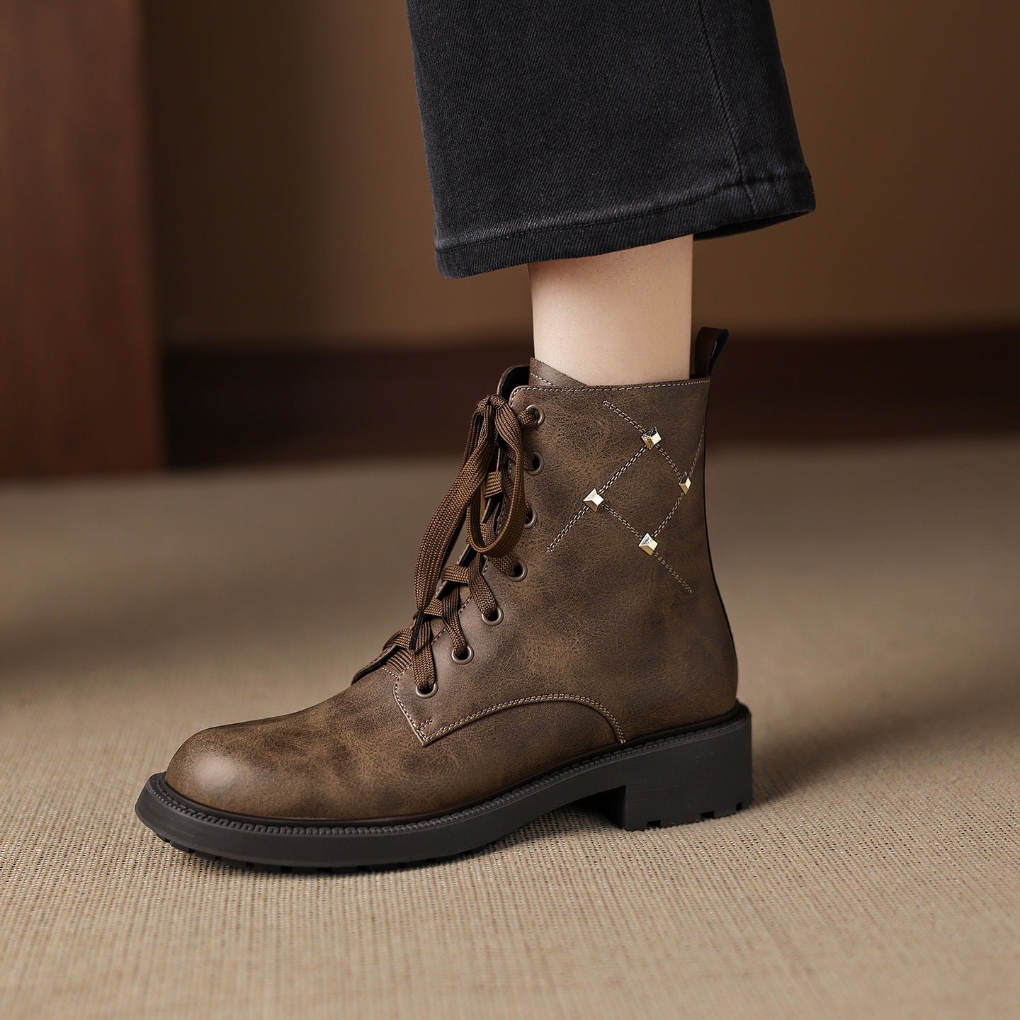 - Item Type: Vintage Fashionable Leather Studs Lace-Up Chunky Boots