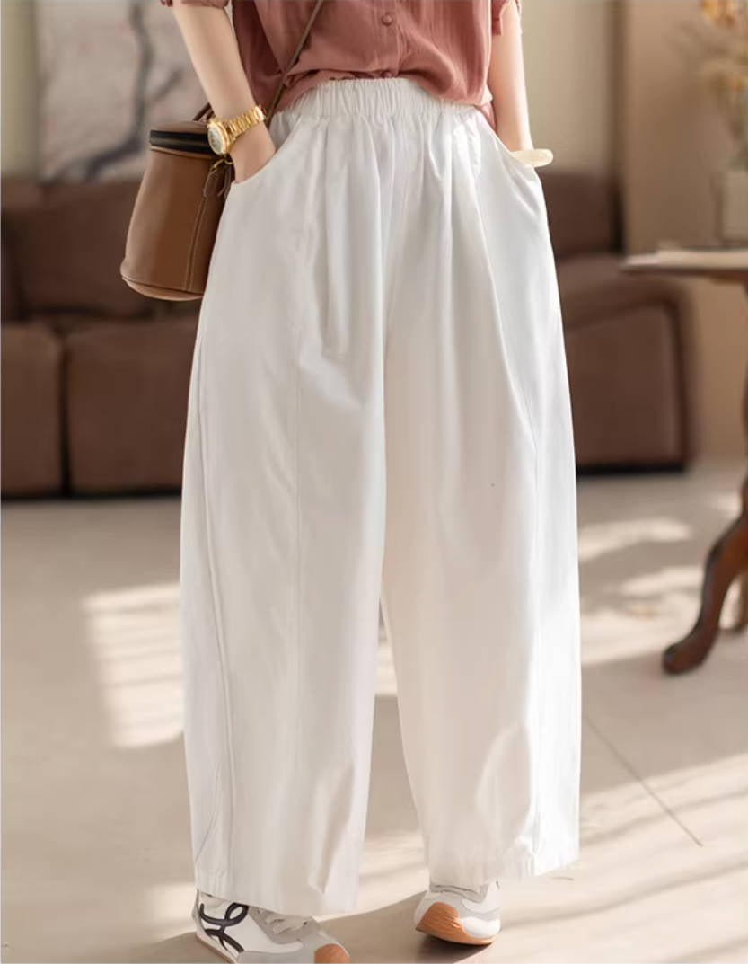 - Item: Cotton Retro Simple Versatile Solid Color Casual Wide Legs Pants