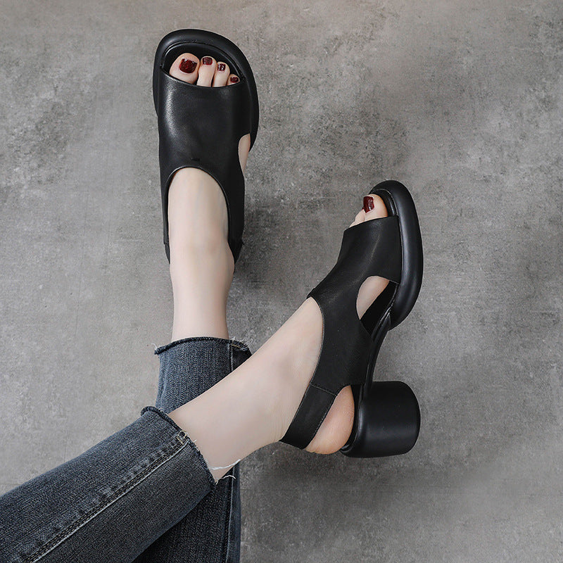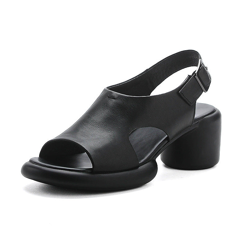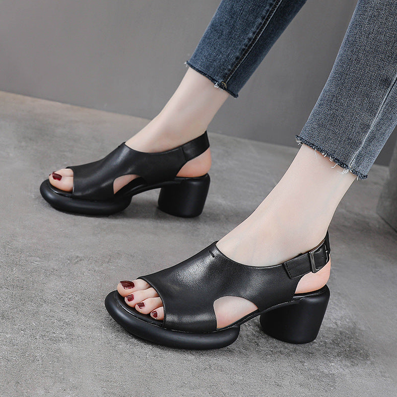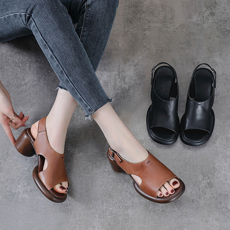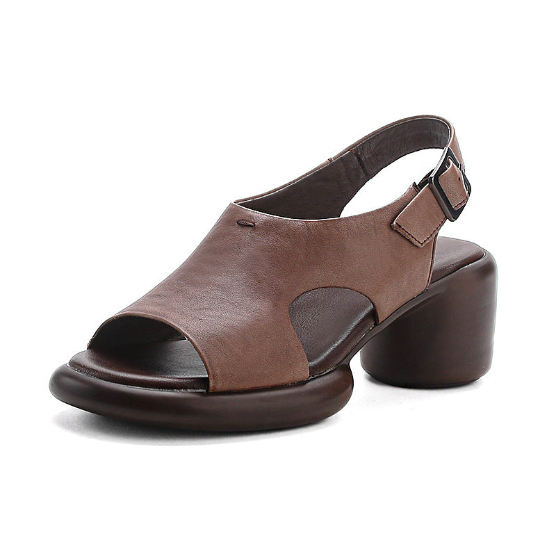 Spring Retro Leather Open Toe Chunky Casual Straped Sandals