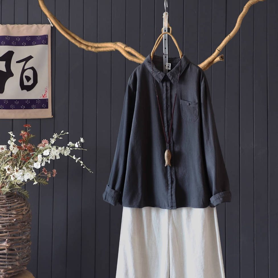 • Item: Autumn Cotton Solid Color Long Sleeves Loose Casual Shirt