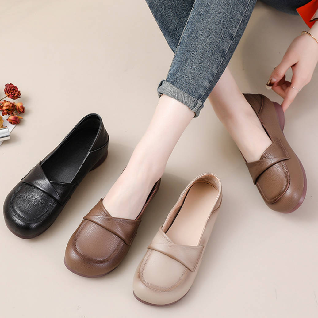 - Item Type: Top Leather Round Toe Simple Soft Sole Slip-On Flat Shoes