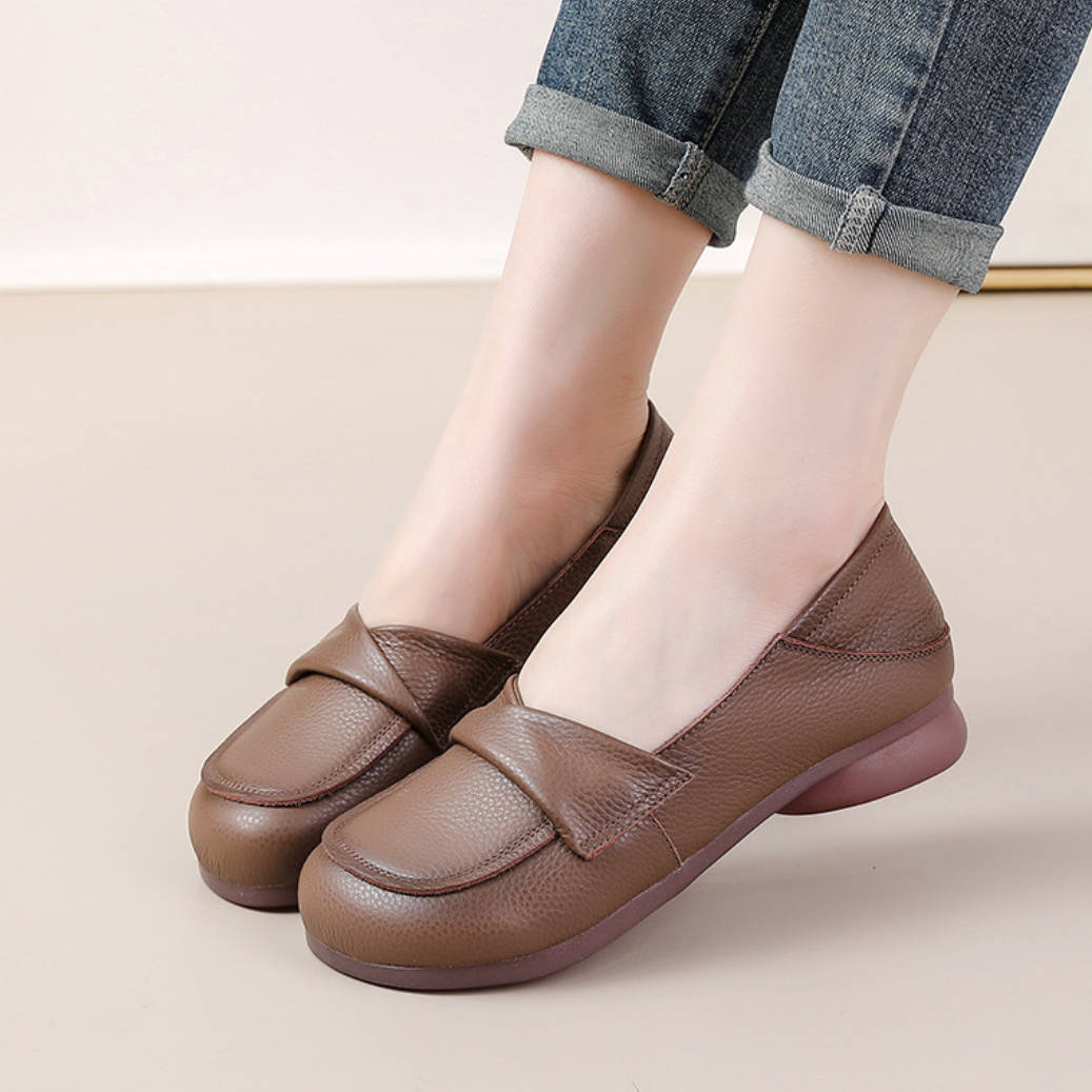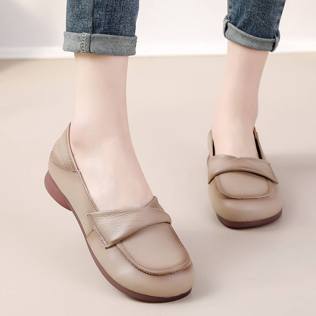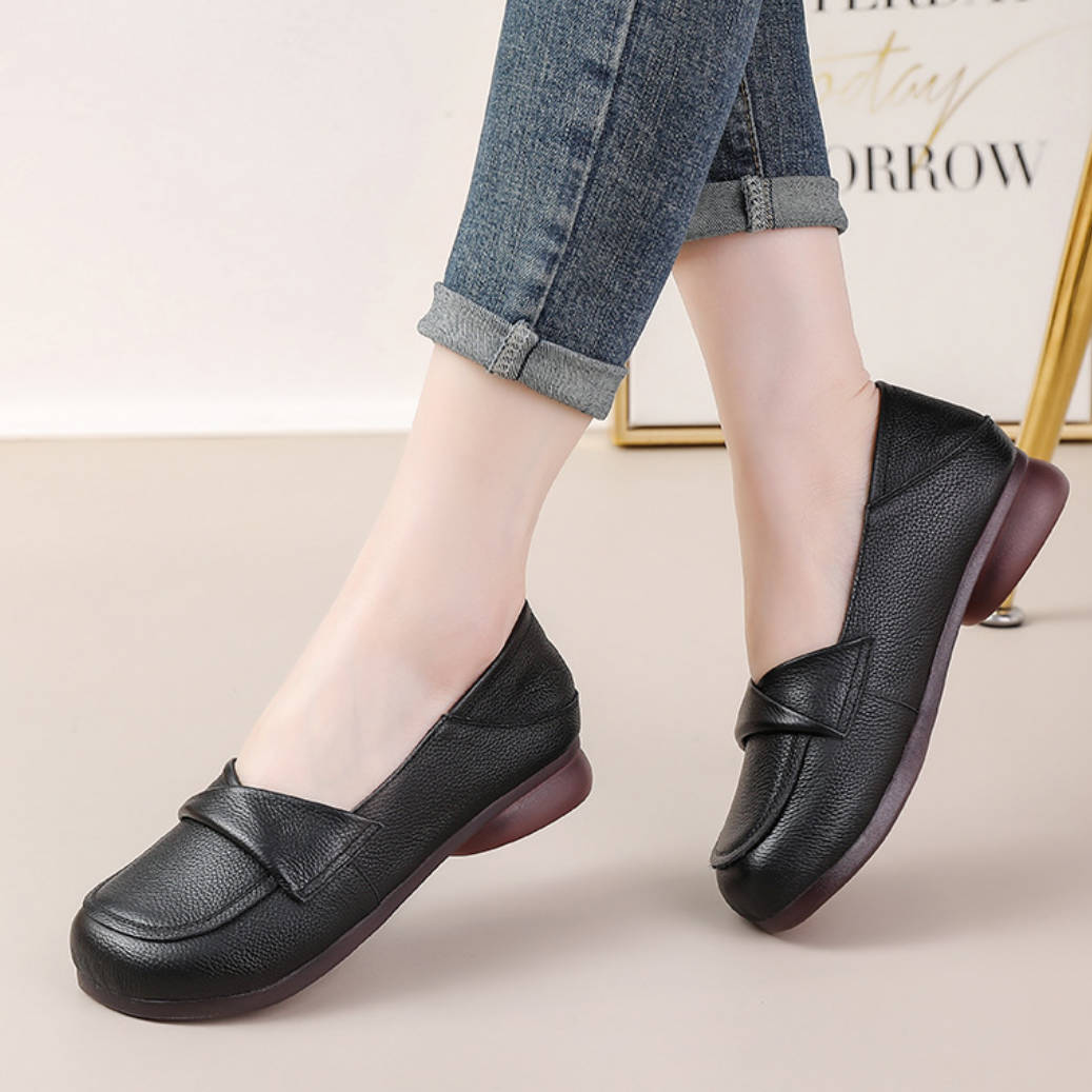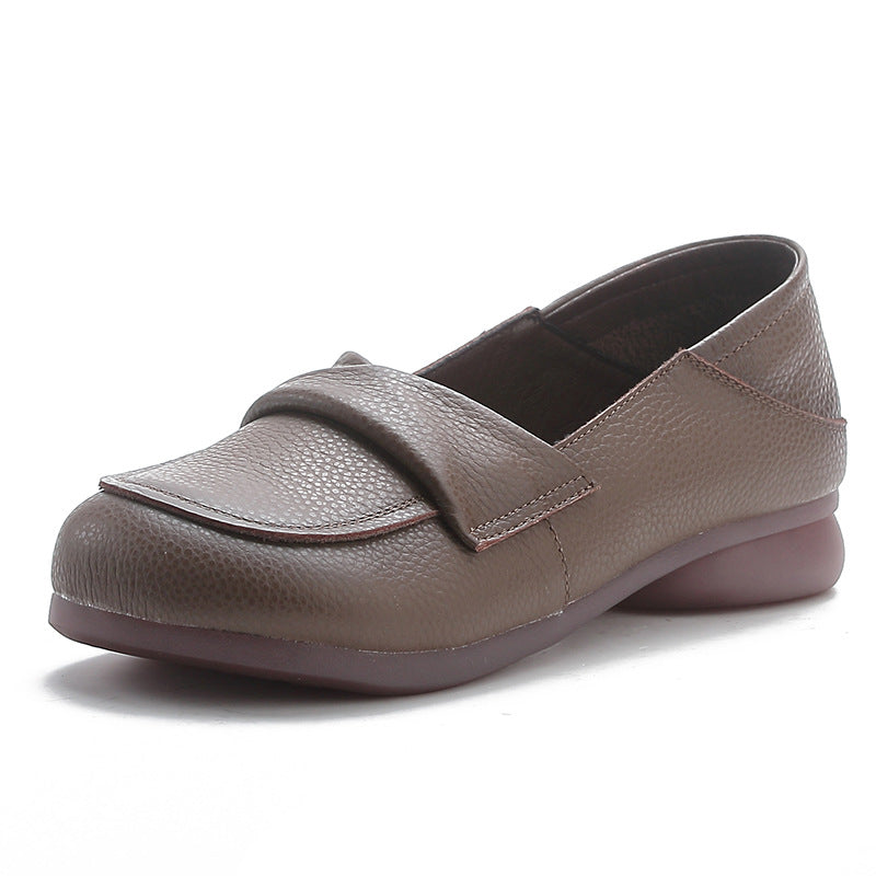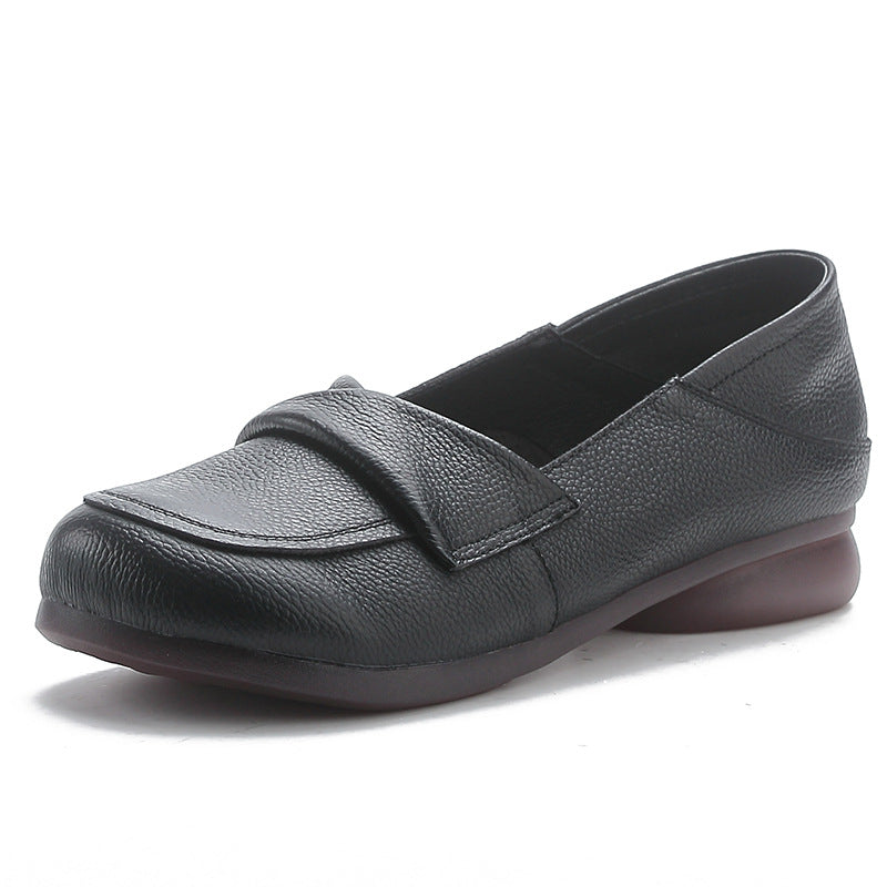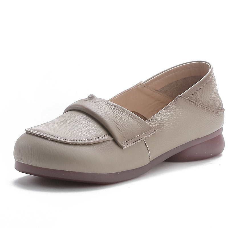 Top Leather Round Toe Simple Soft Sole Slip-On Flat Shoes