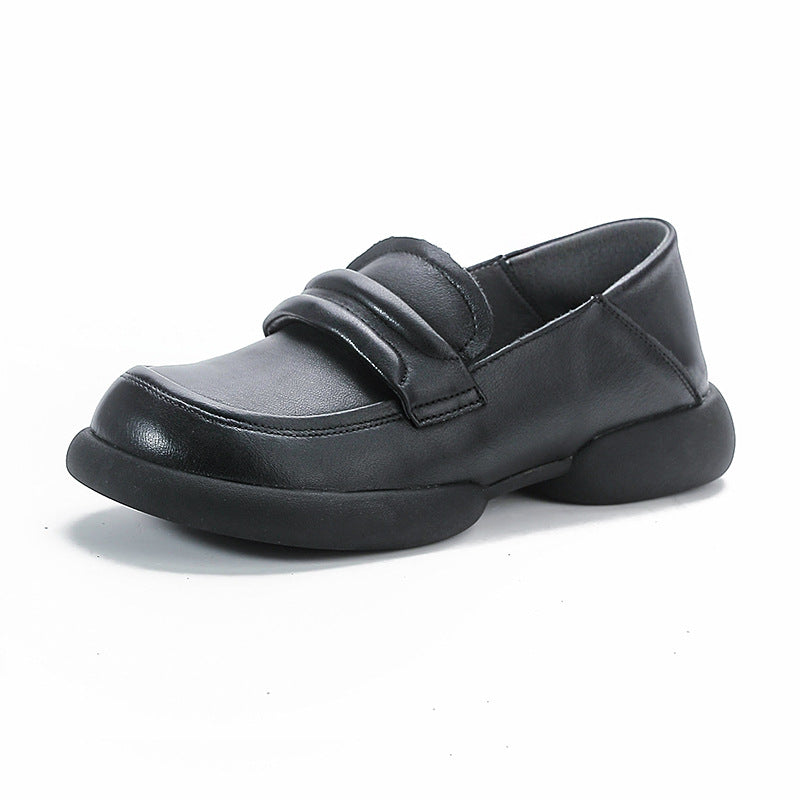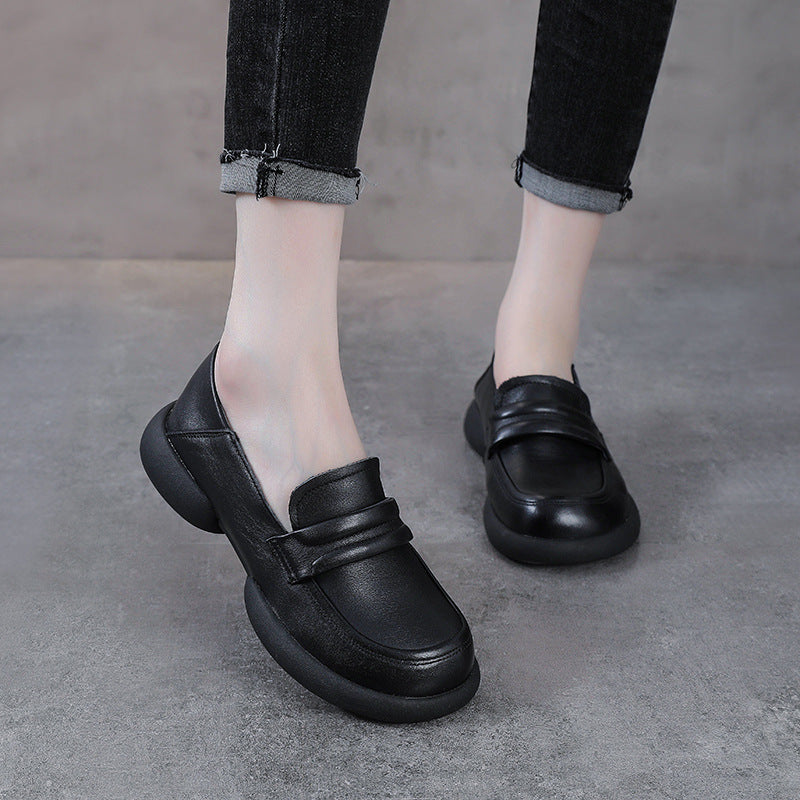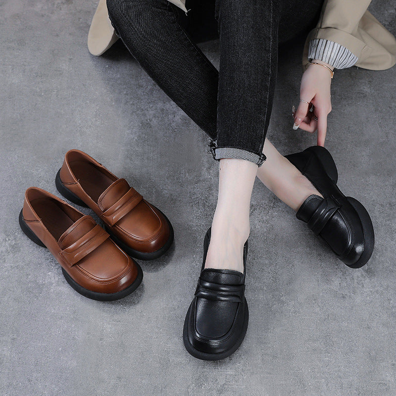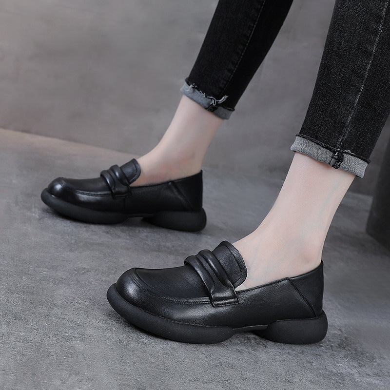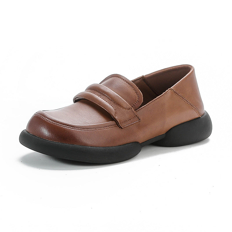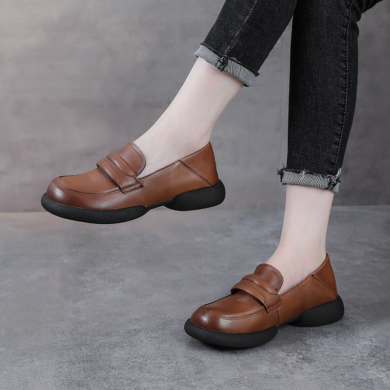 Vintage Cowhide Round Toe Slip-On Casual Everyday Soft Shoes