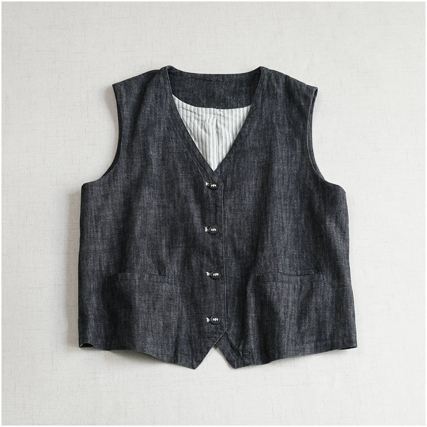 - Item: Versatile Retro Cotton V-Neck Patchwork Black Single Breasted Vest