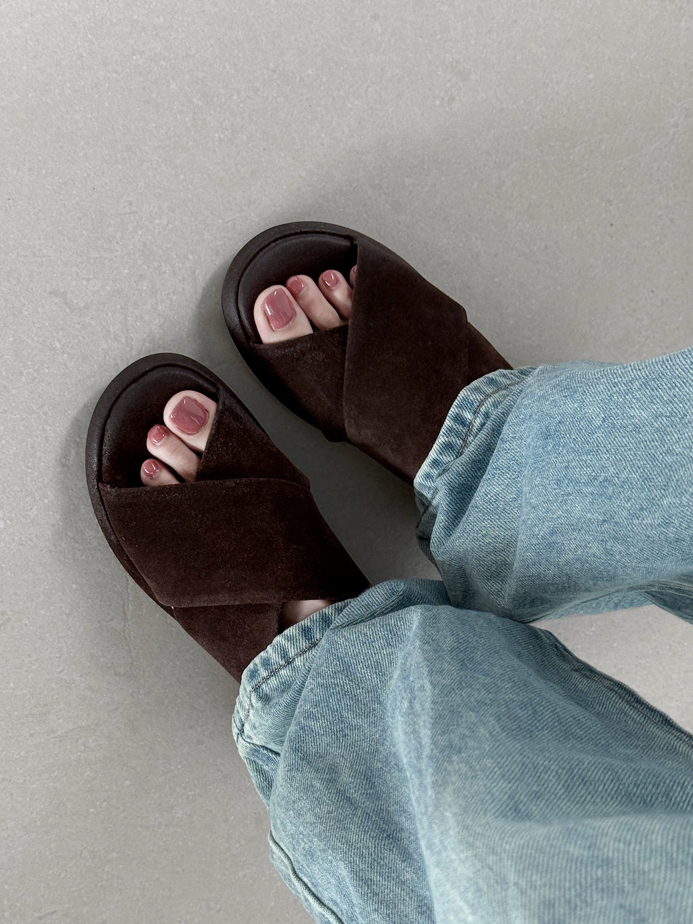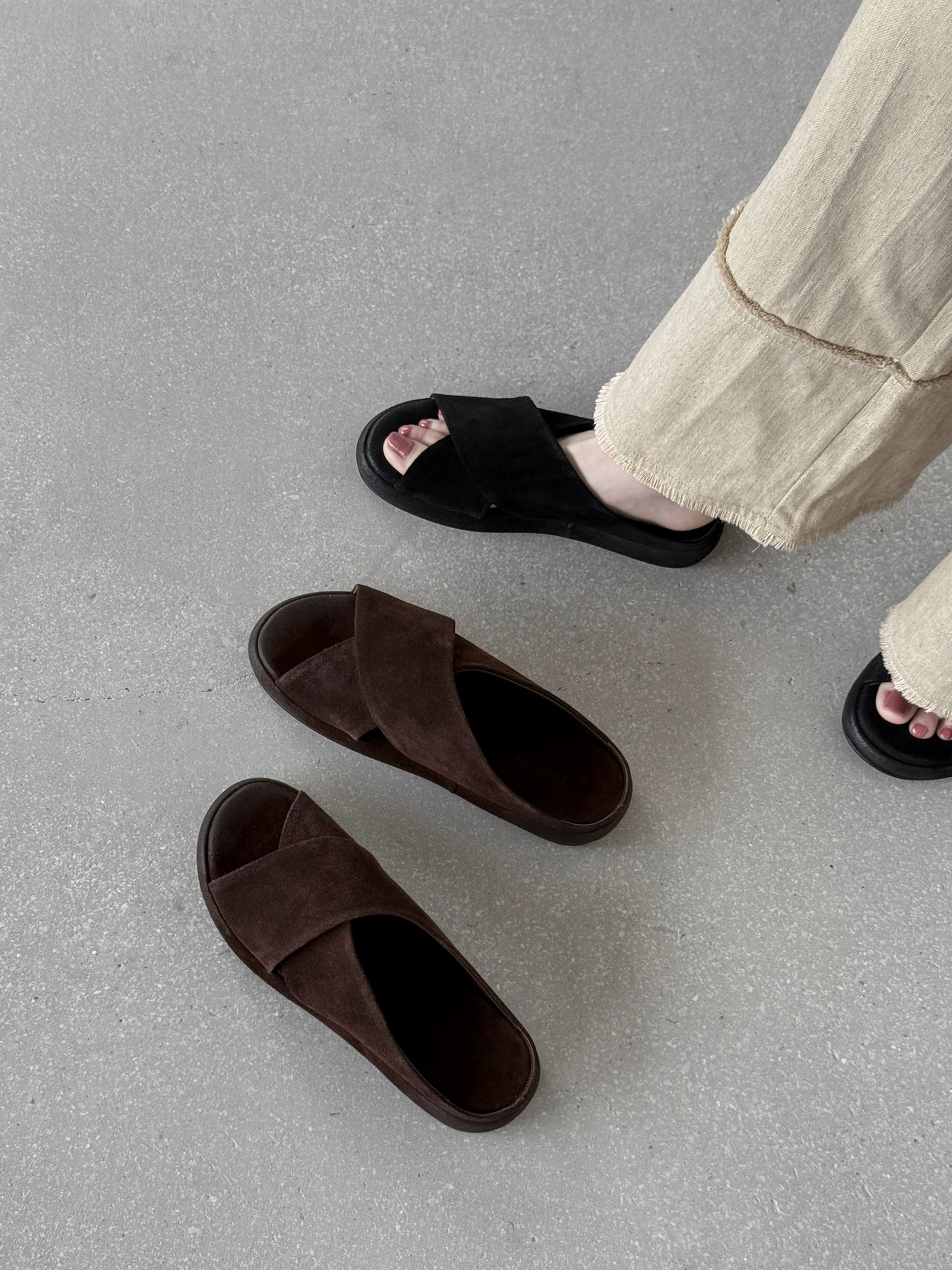 Women Vintage Leather Sueded Open Toe Crossing Platform Shoes