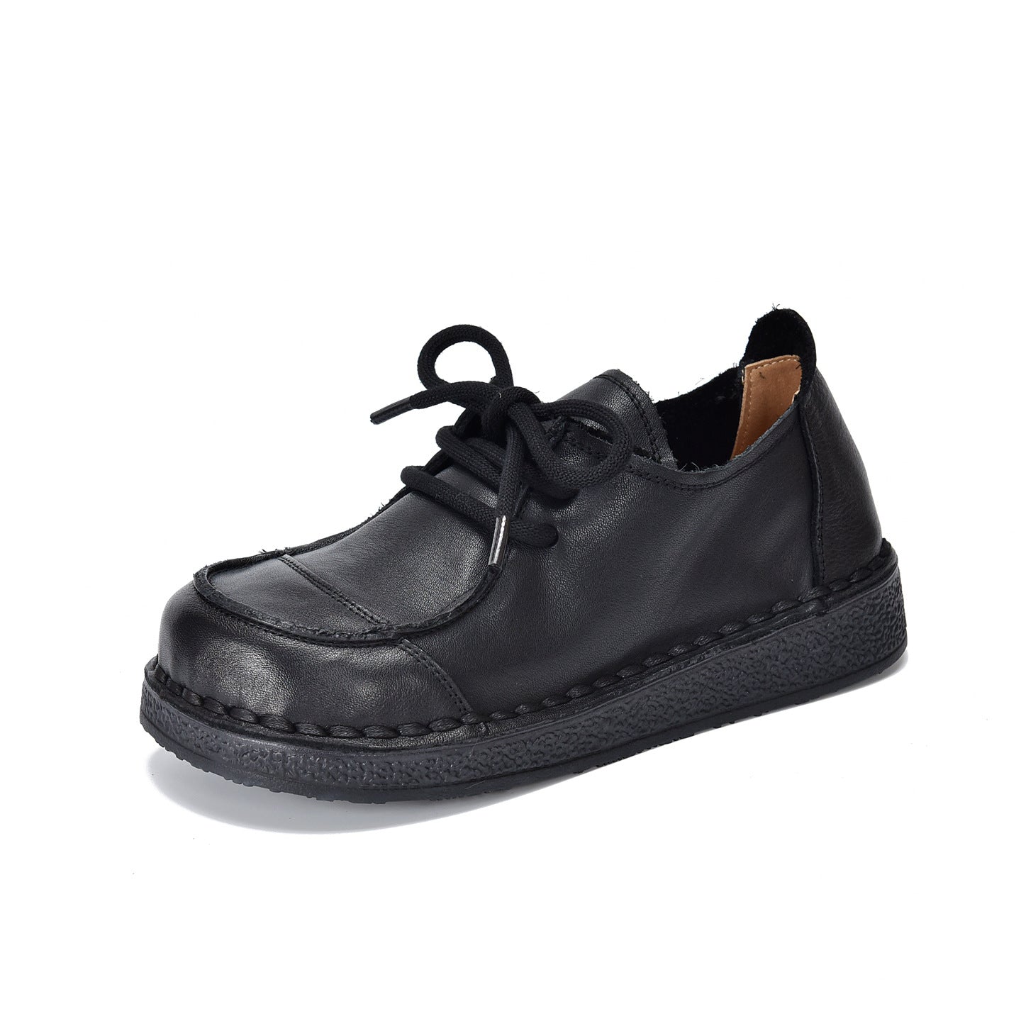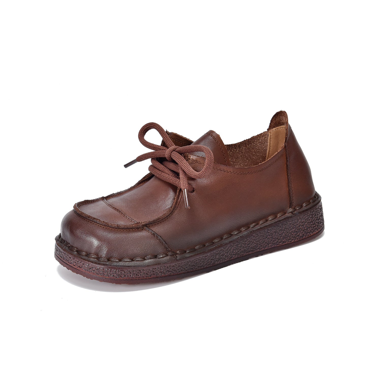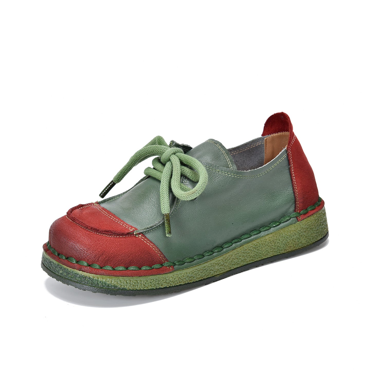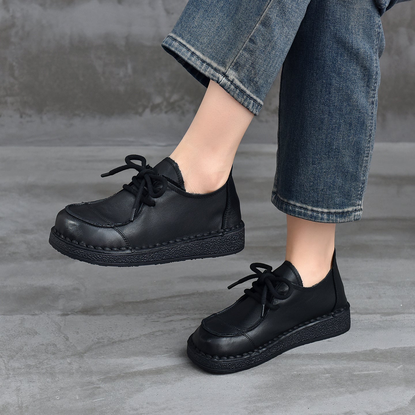 - Item Type: Retro Leather Wide Toe Lace-Up Patchwork Soft Sole Flat Shoes