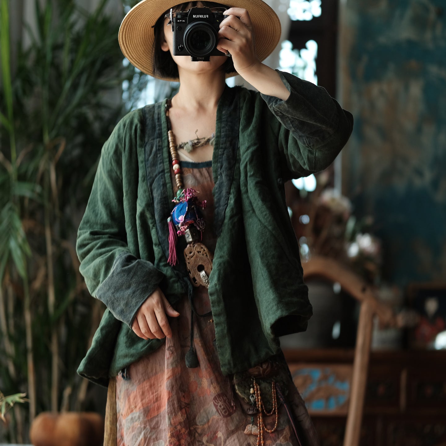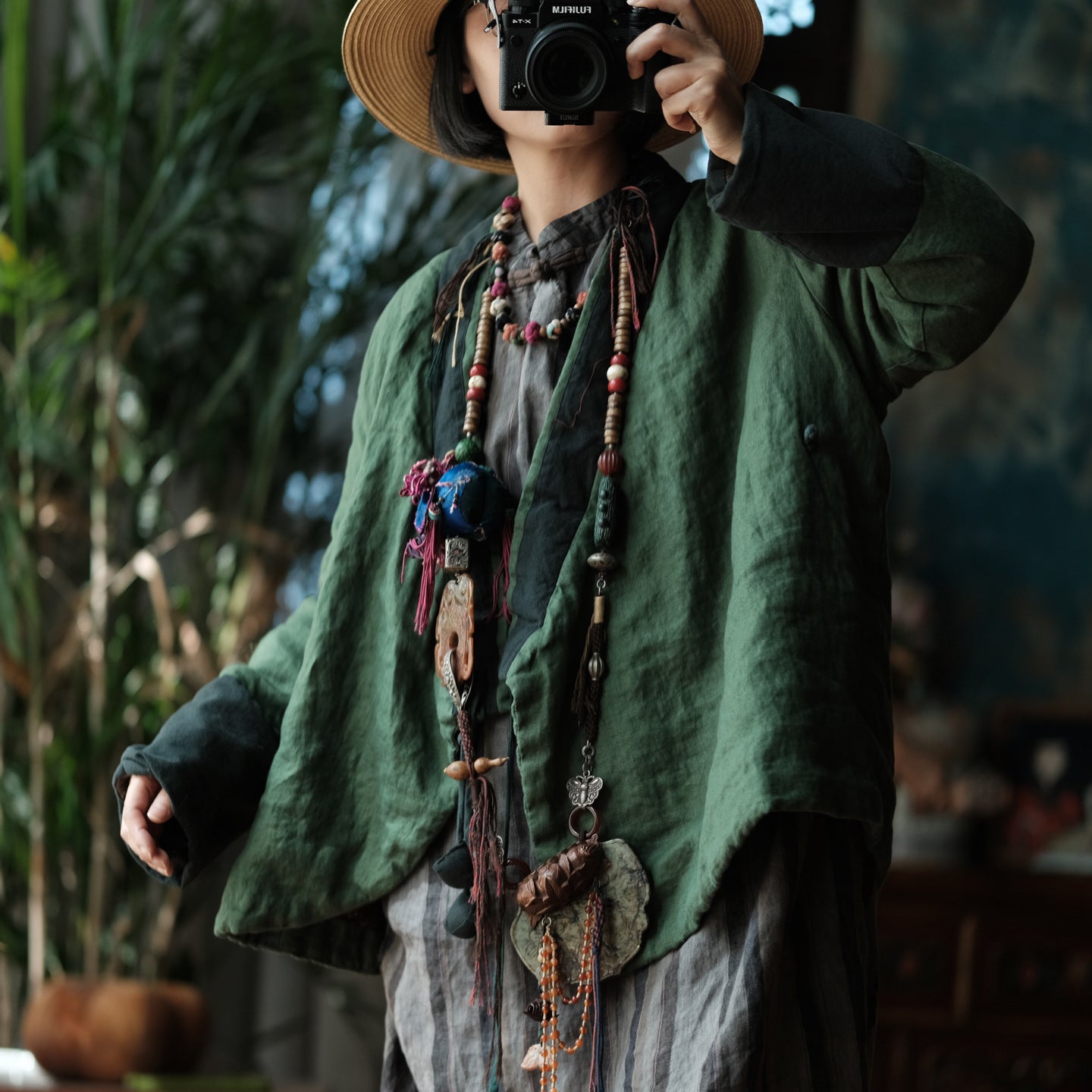 - Item: Women Retro Autumn Linen Thick V-Neck Plus Size Coat