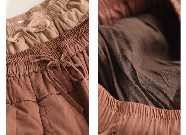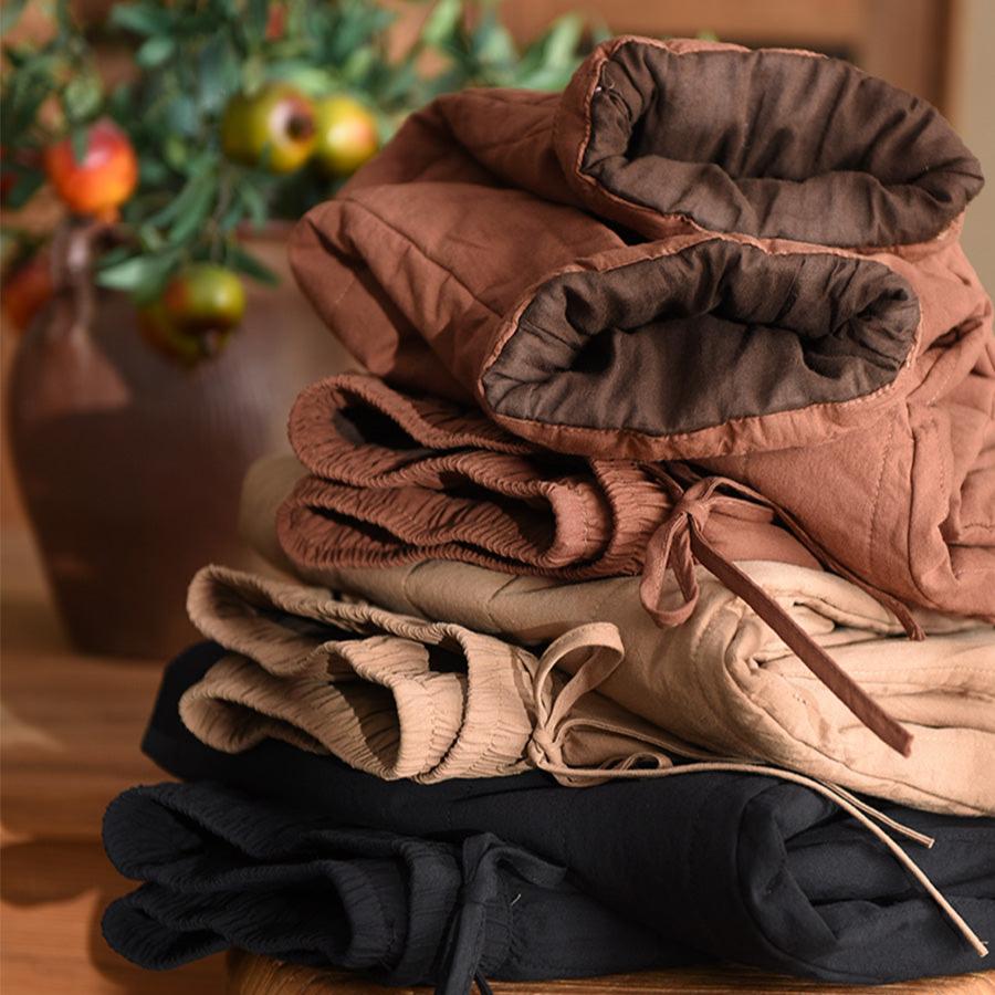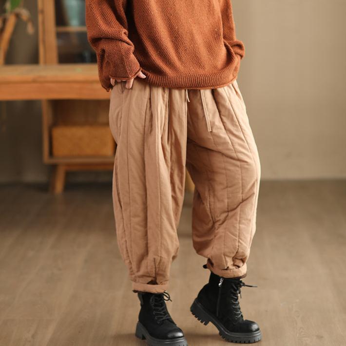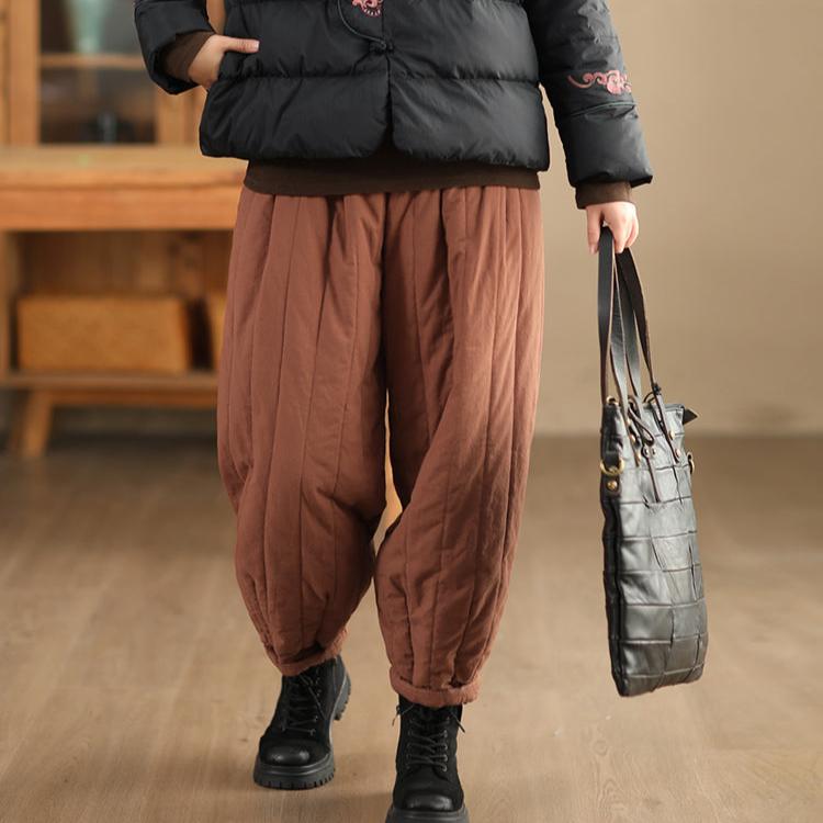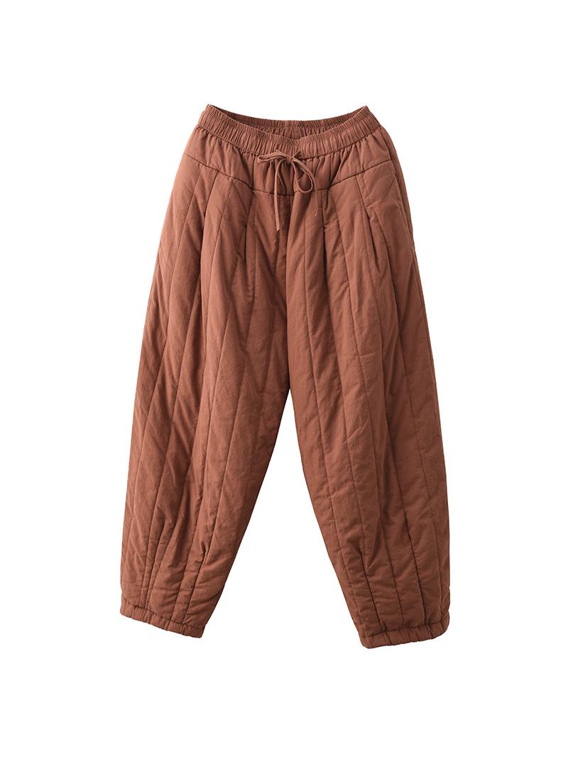 Babakud Women Winter Retro Classic Solid Colors Quilted Thickened Cotton Pants