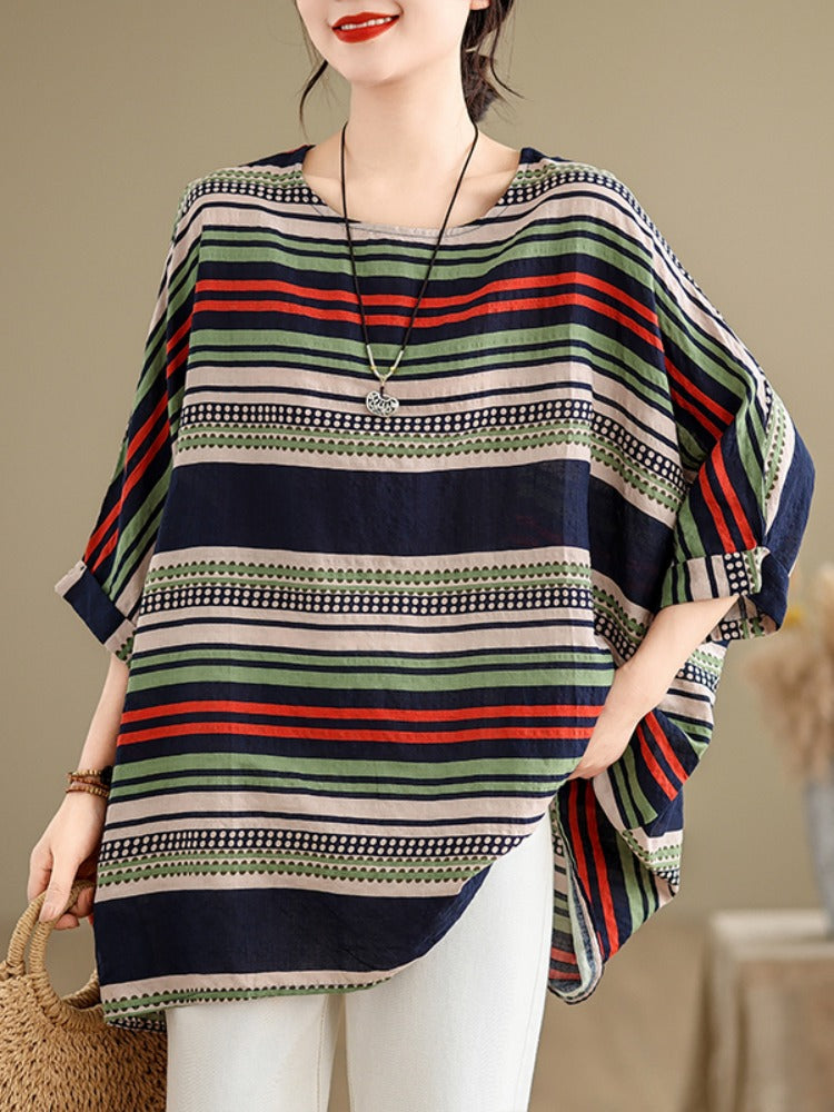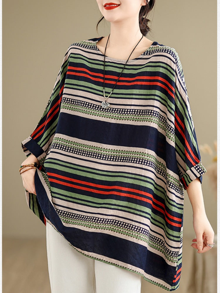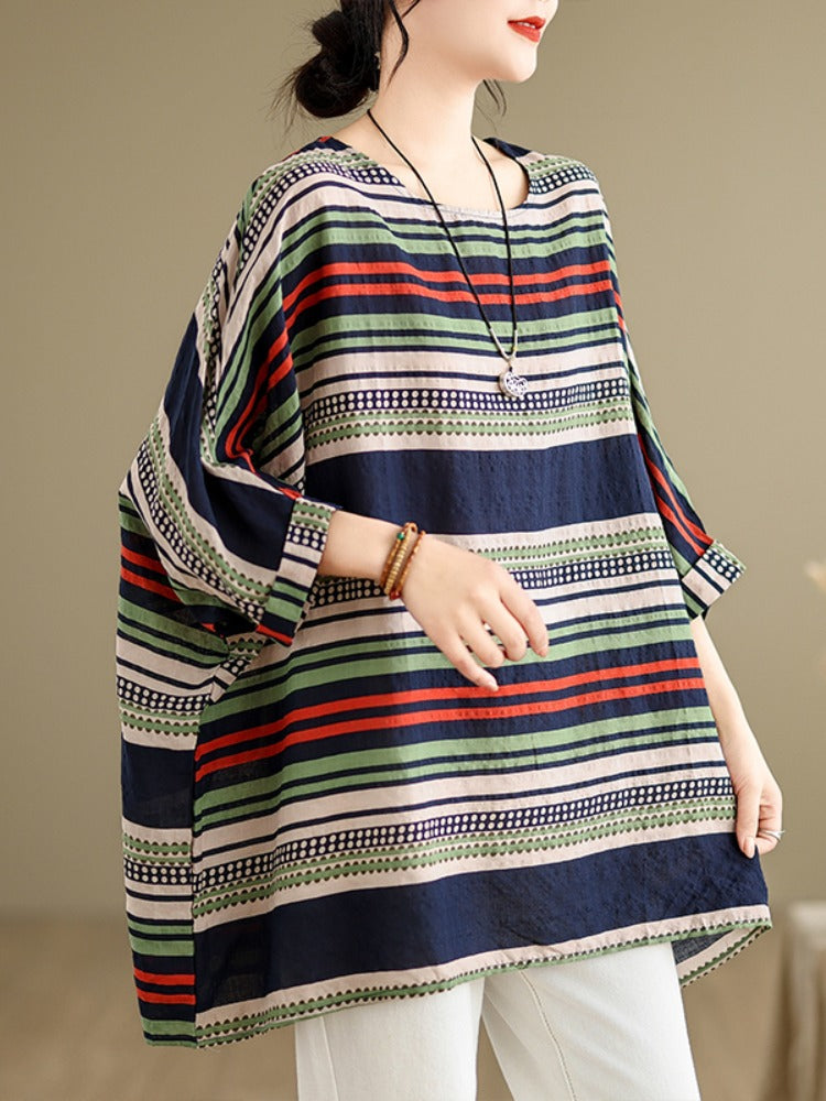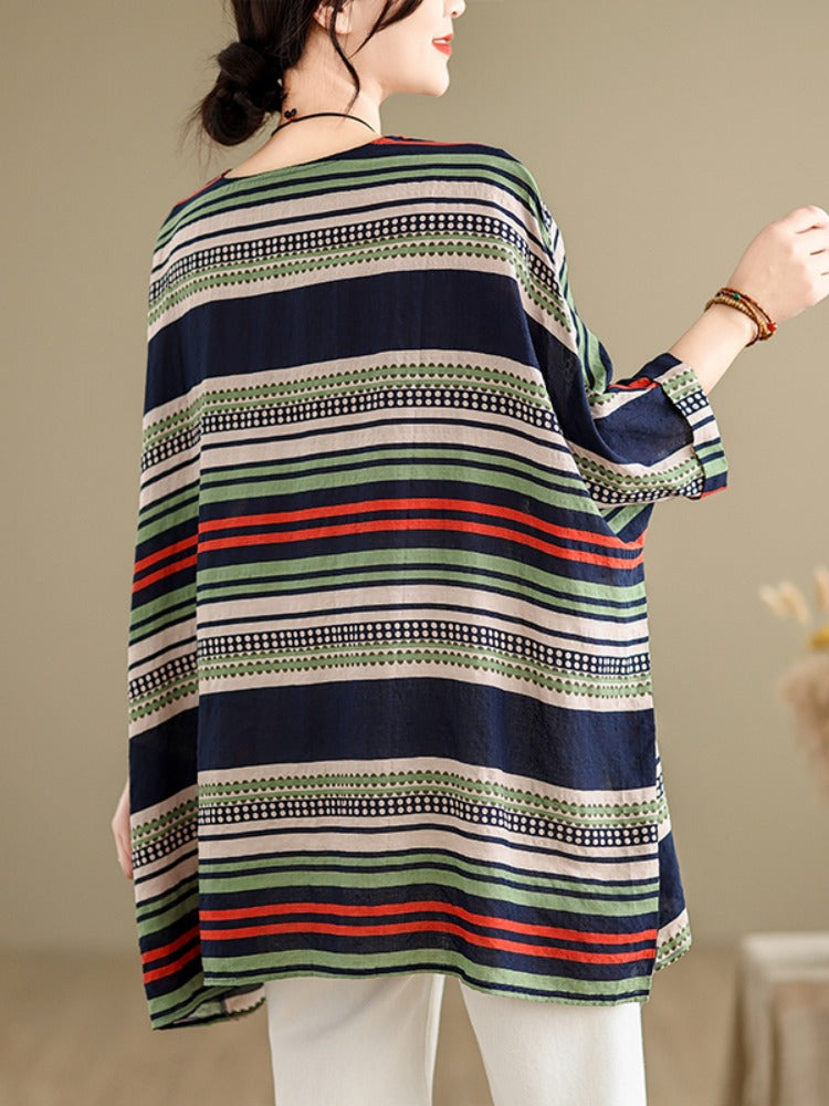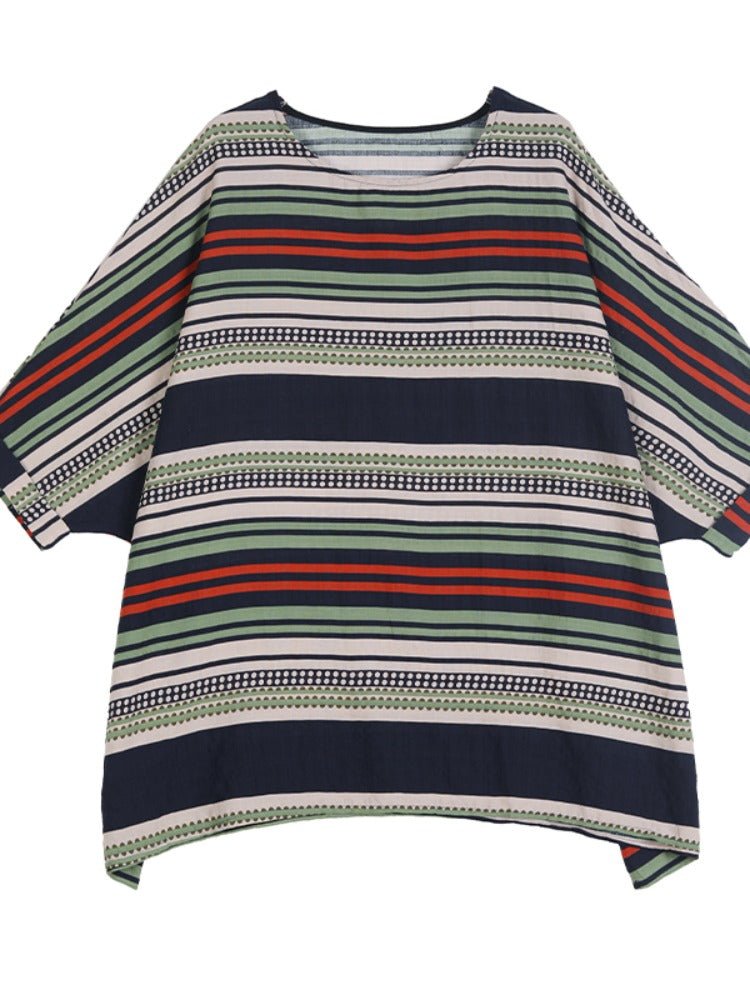 - Item: Women Summer Retro Cotton-Linen Striped Casual Loose Tops