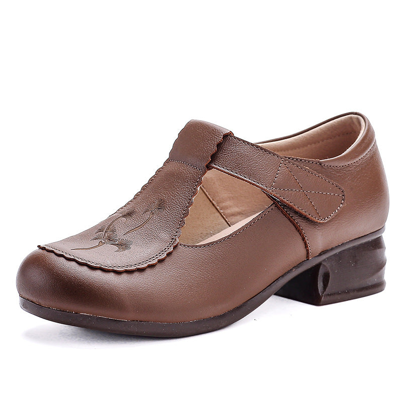• Item Type: Genuine Leather Round Toe Floral Printed Cut Out Velcro Chunky Shoes