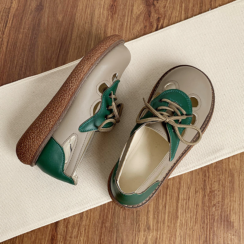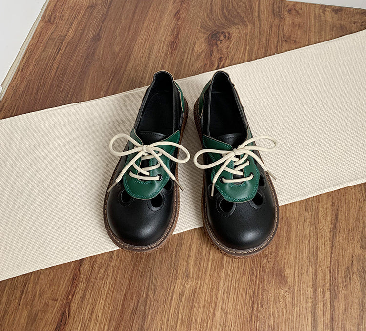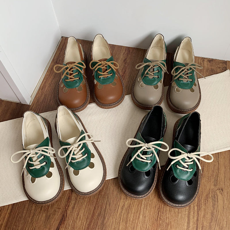 • Item Type: Women's Lace-Up Contrast Color Hollow Leather Casual Shoes