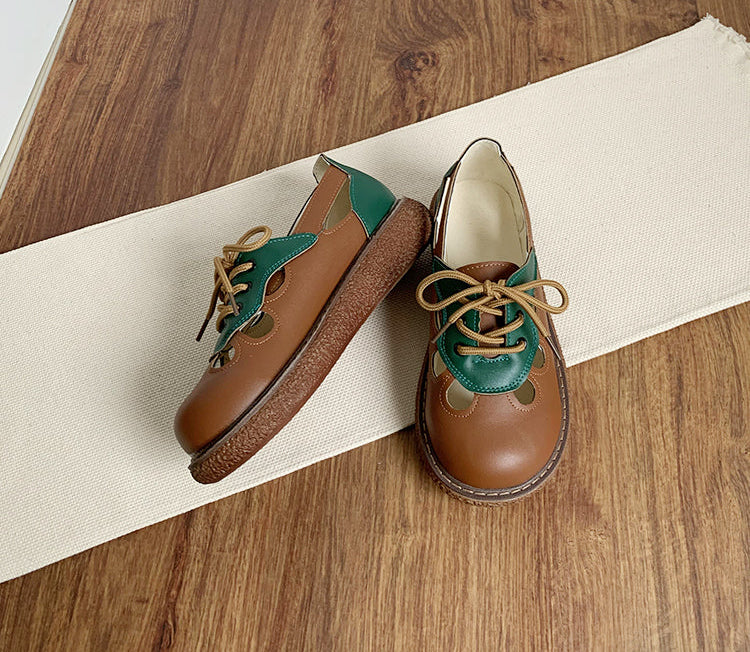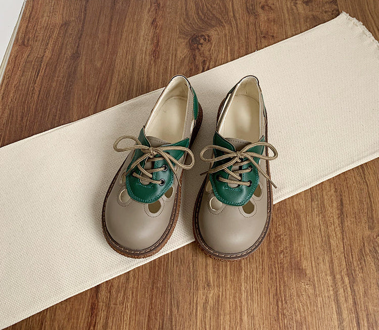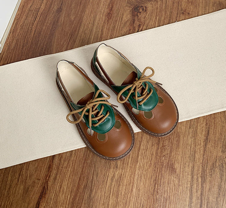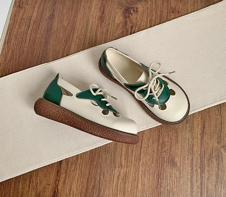 Women's Lace-Up Contrast Color Hollow Leather Casual Shoes