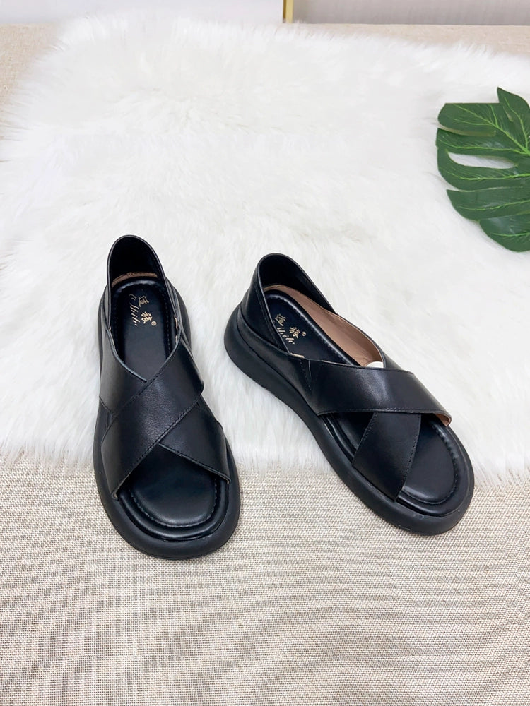 Summer Casual Leather Plus Size Open Toe Soft Sole Shoes