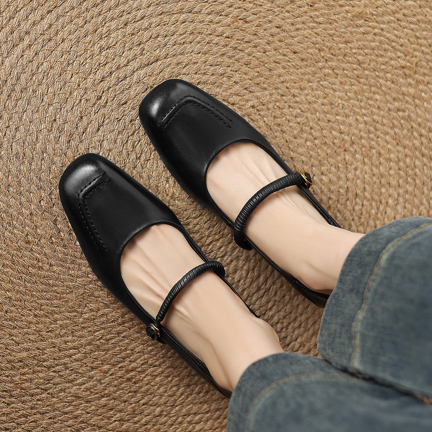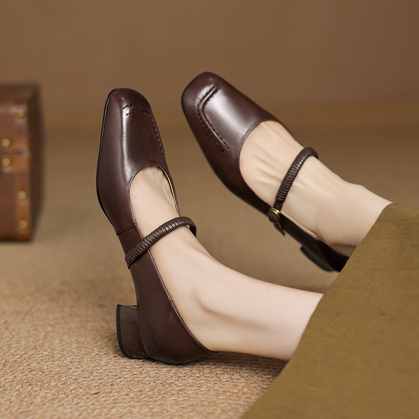 - Item Type: Vintage Leather Square Toe One Straped Chunky Shoes