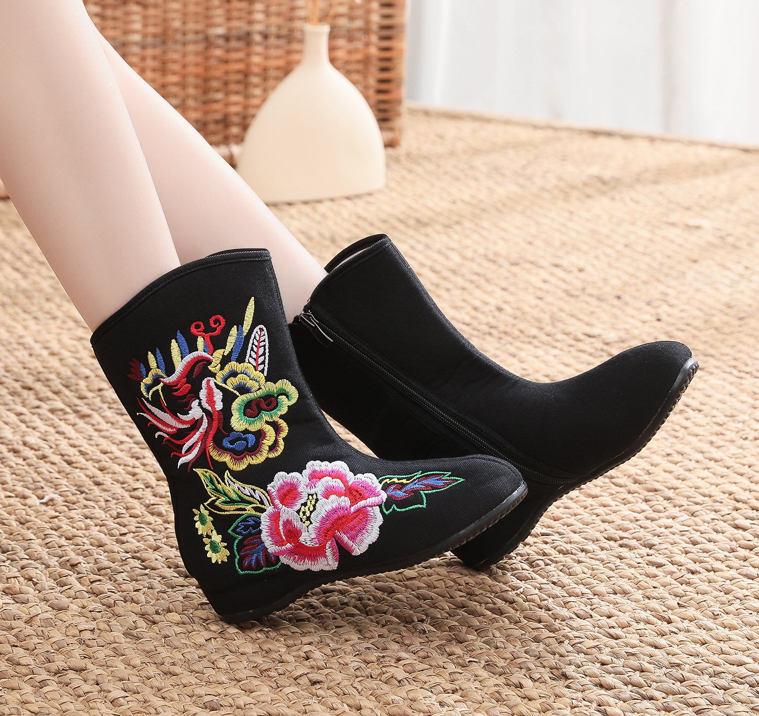- Item Type:?Women Traditional Floral Embroidered Fleece Cotton Boots