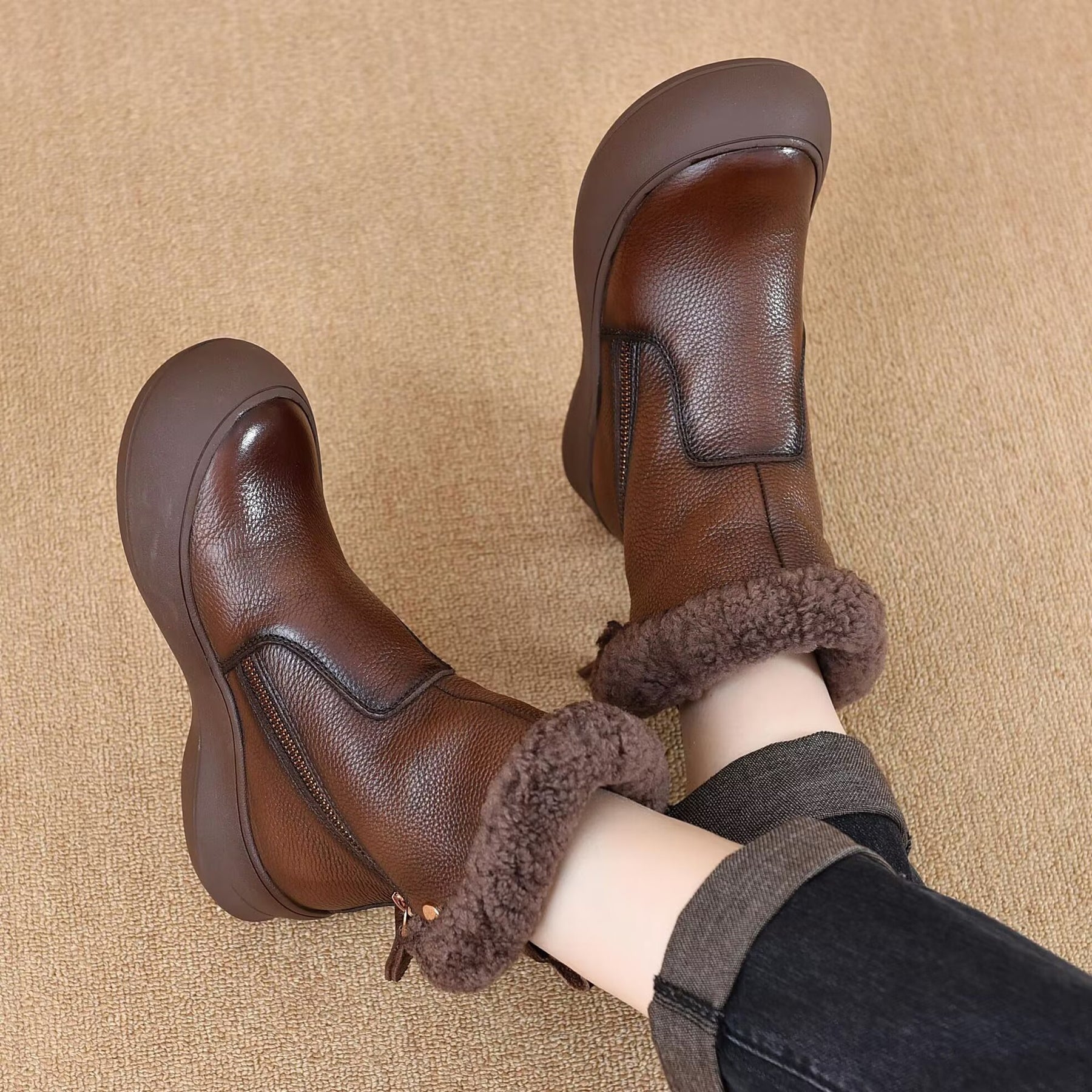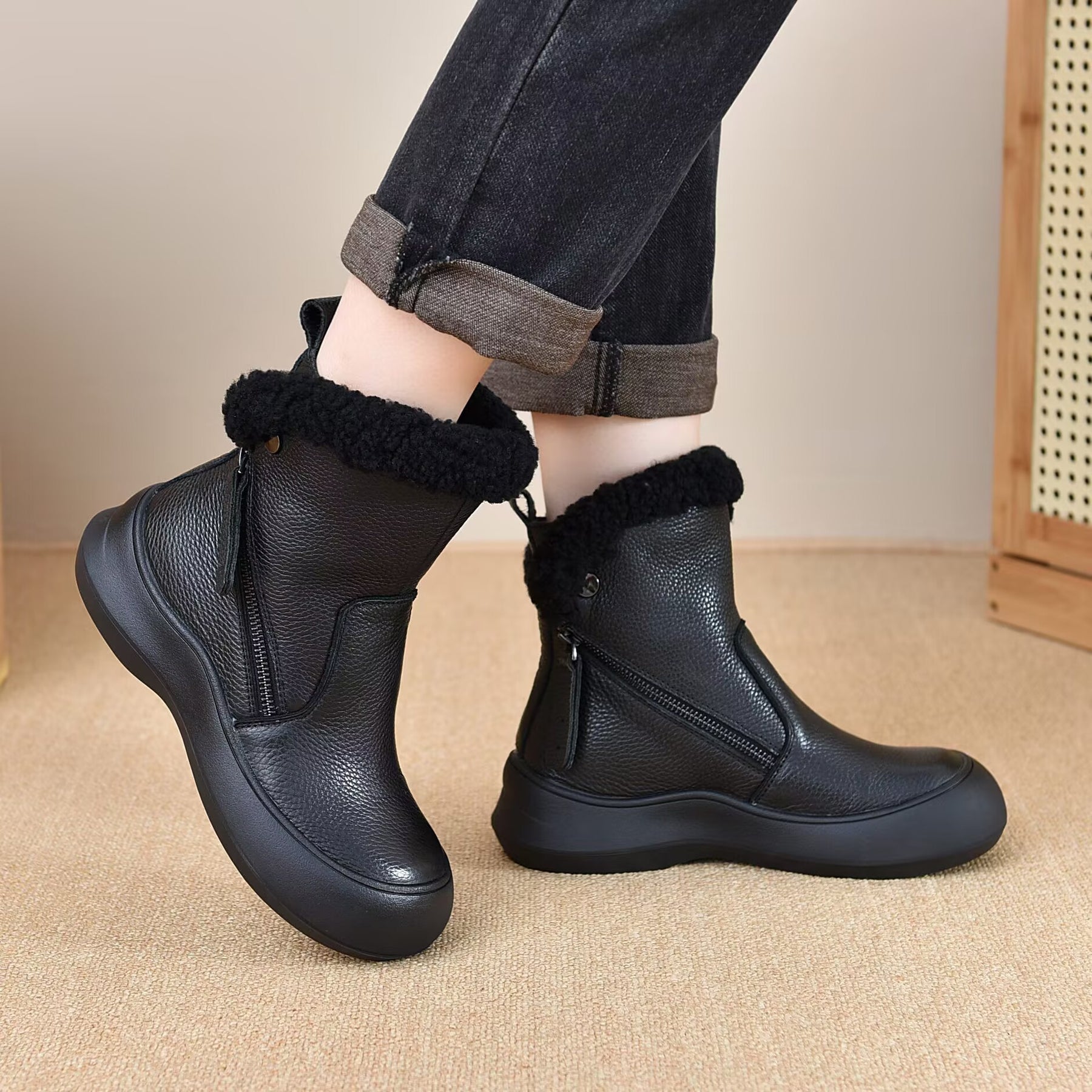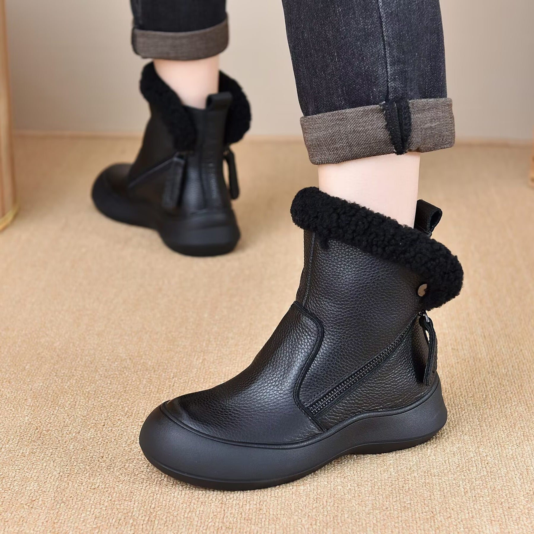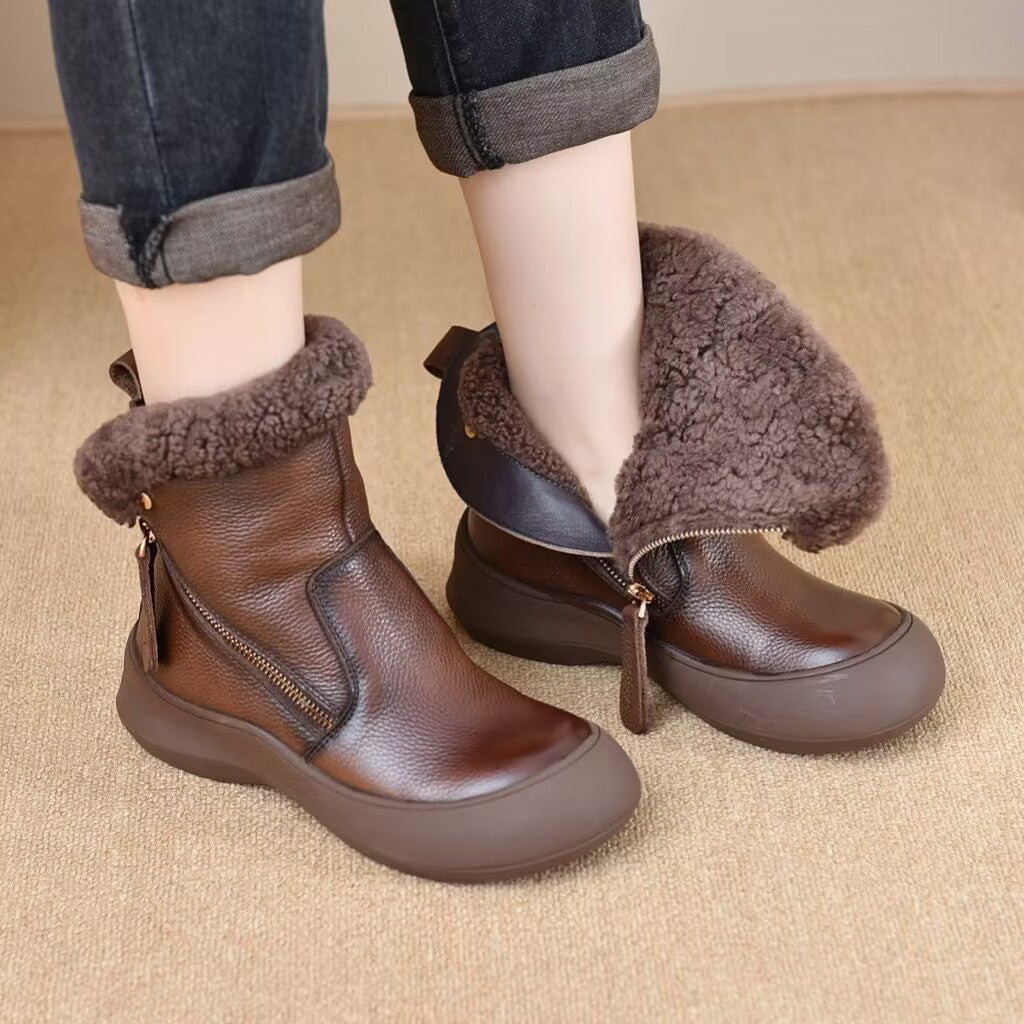 Botas de cuero cálidas con forro de piel de oveja y cremallera de moda para mujer