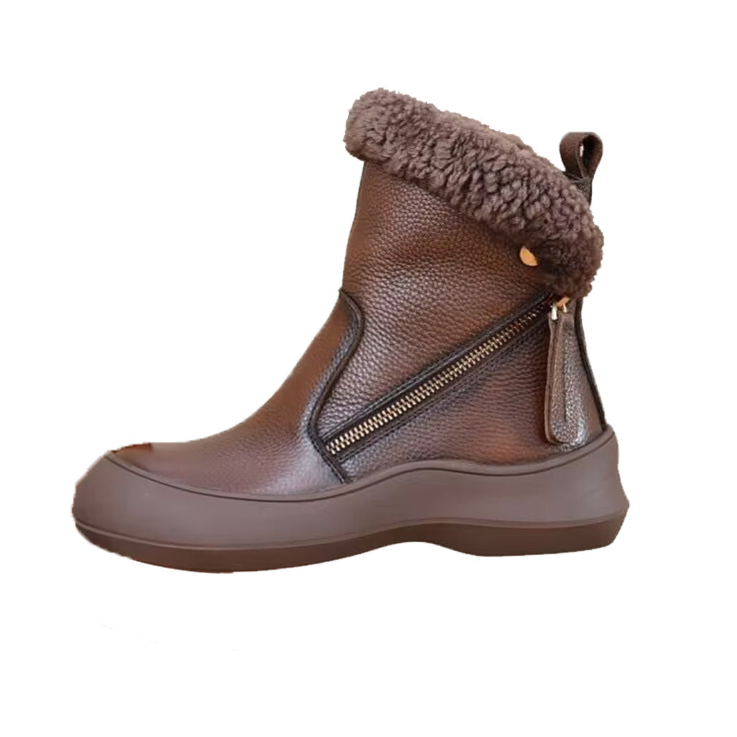- Tipo de artículo: Botas de cuero cálidas con forro de piel de oveja y cremallera de moda para mujer