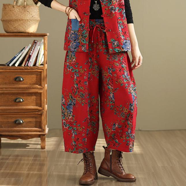 - Artículo: Pantalones casuales Babakud de invierno para mujer, estilo étnico con estampado floral y forro polar.