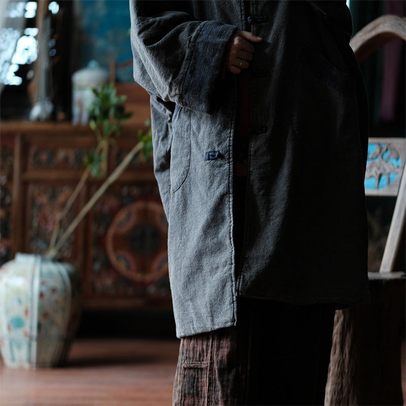 Bata holgada de lino retro de otoño para mujer de Babakud